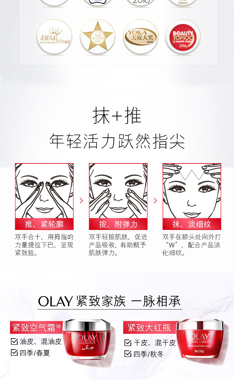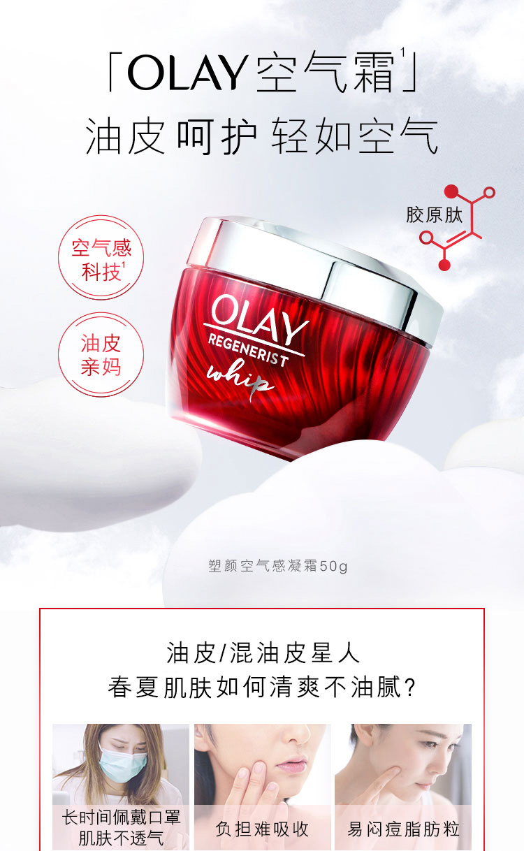 OLAY玉兰油大红瓶空气霜50g(乳液补水保湿面霜胜肽抗皱提拉紧致 淡纹) 女士护肤品生日表白礼物