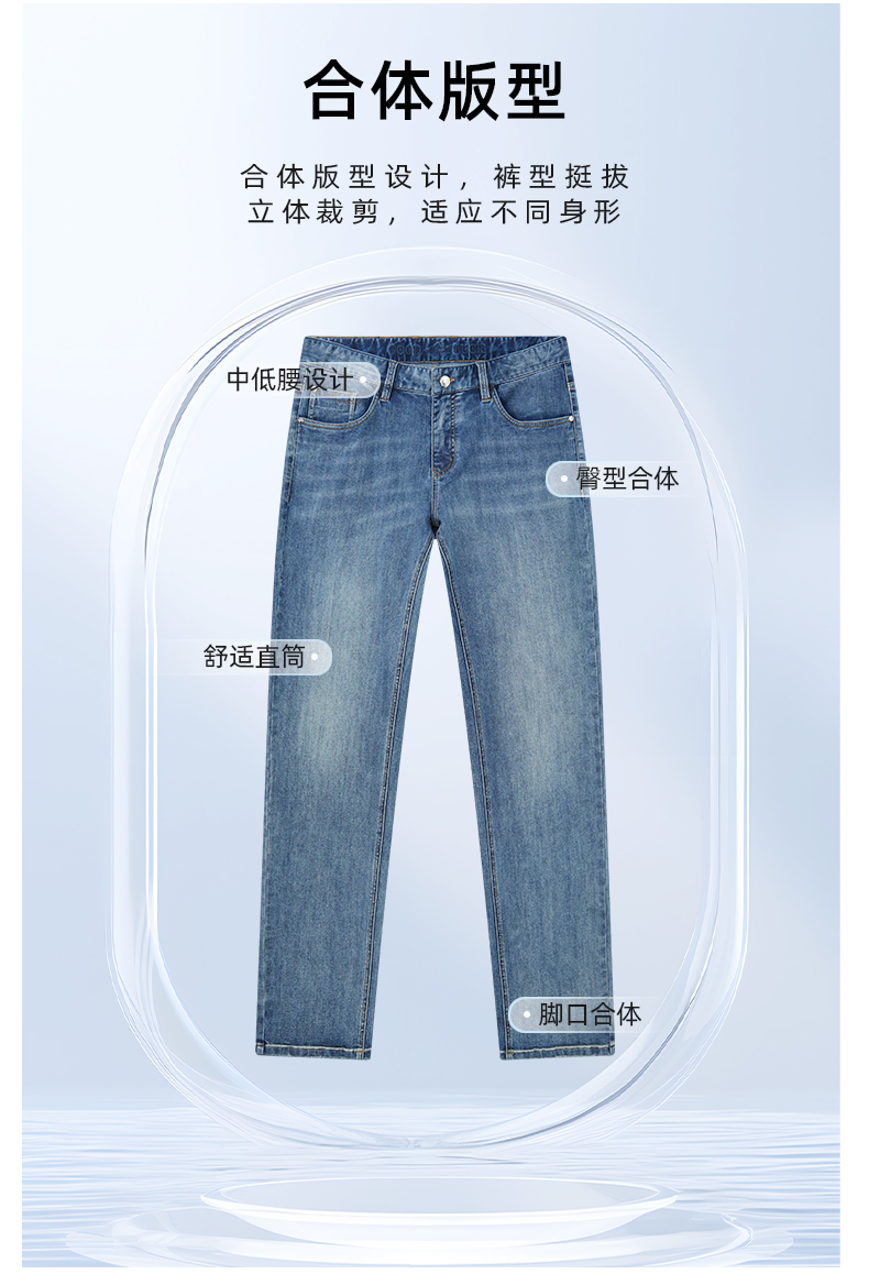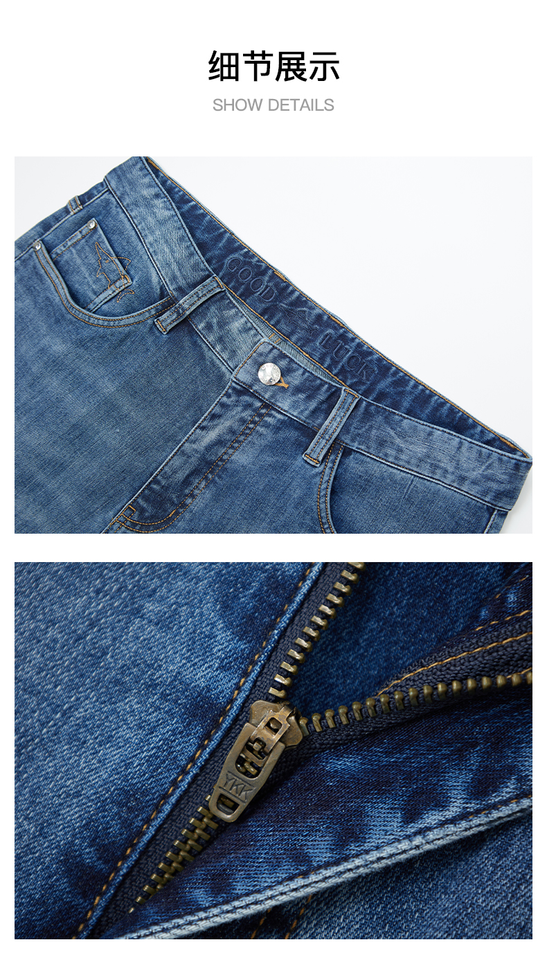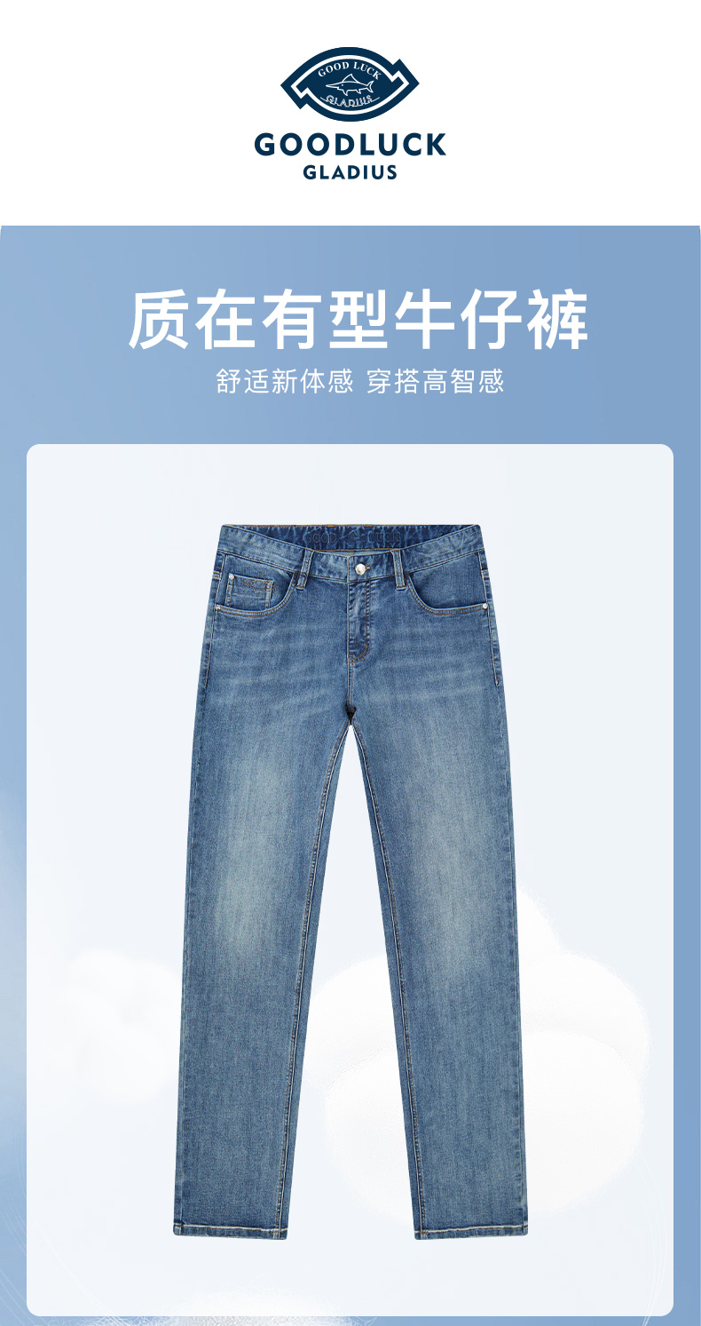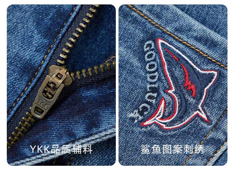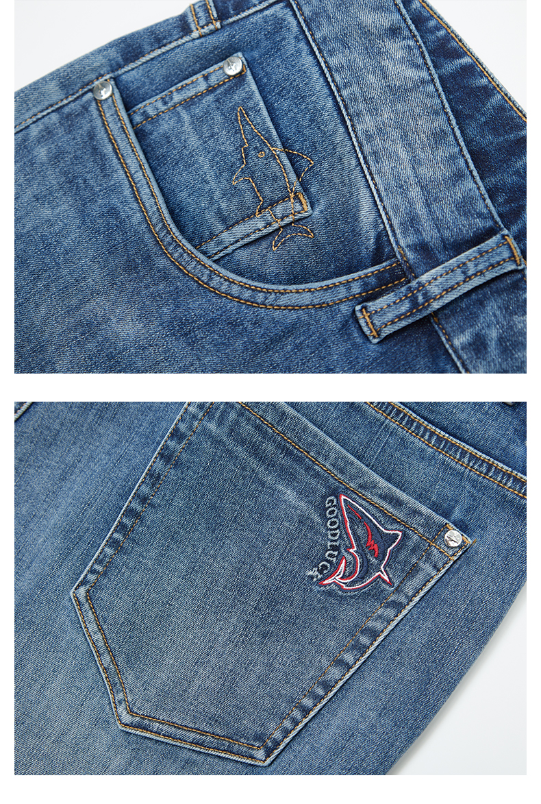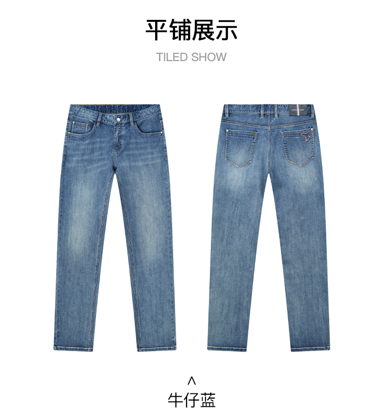 德鲨鲨鱼男装棉质牛仔裤2025夏季新款休闲直筒裤子男长裤
