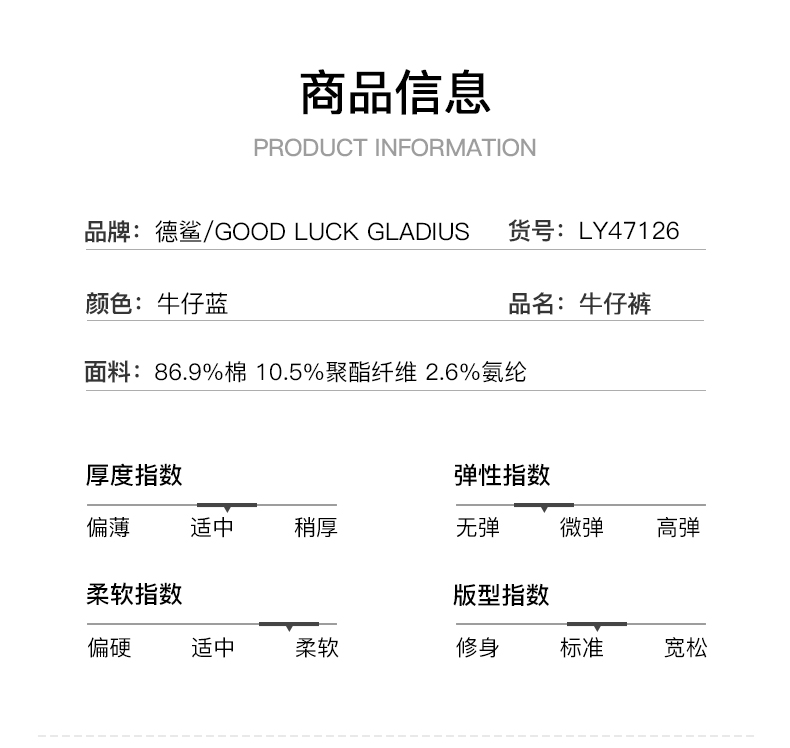GOOD LUCK GLADIUS品牌由“浙江德鲨服饰有限公司”引进中国市场,经过多年发展,凭借完善的终端形象,规范化的销售管理,迅速赢得消费者的认可,引领国内消费流行,是成功人士首选男装品牌。