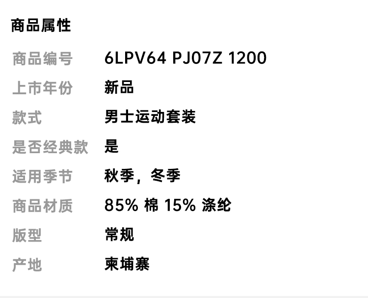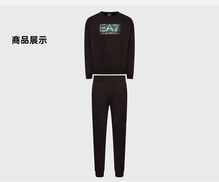 EMPORIO ARMANI EA7 阿玛尼 男士棉质字母徽标印花运动套装 黑色 6LPV64 PJ07Z 1200