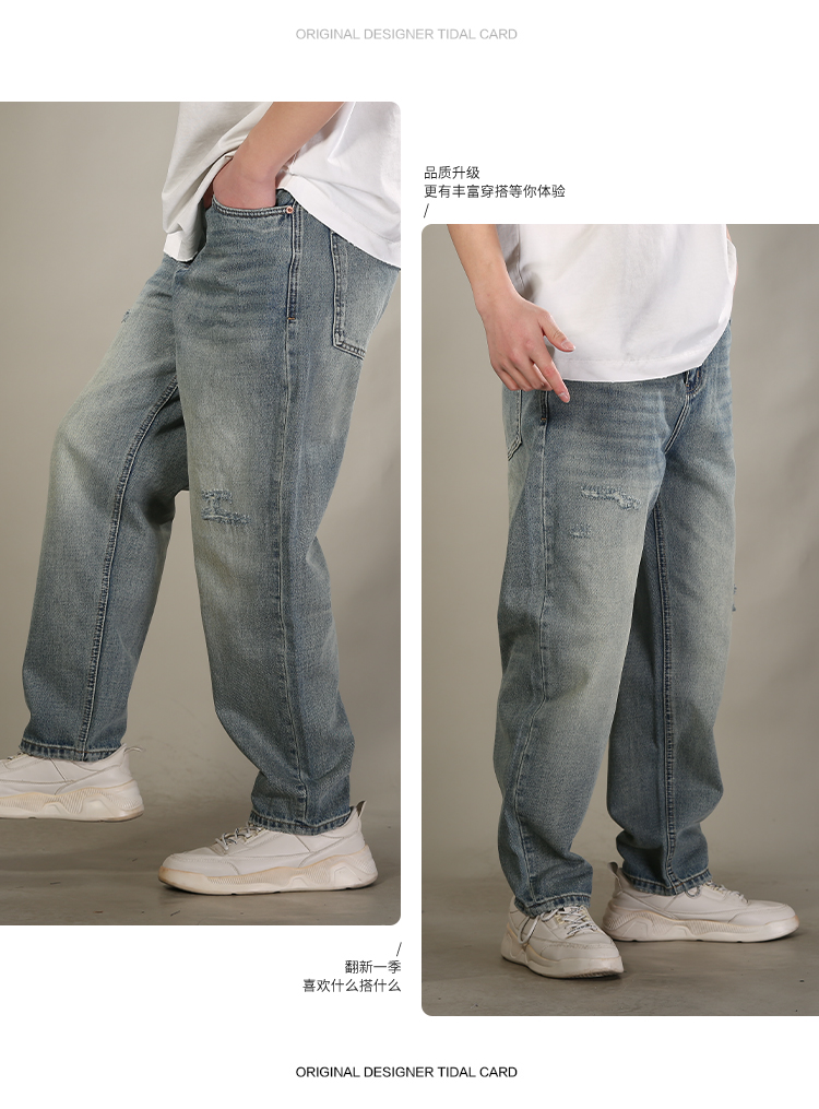 DRONKOO 2026 正常腰右袋破缝夹唛弹力中厚牛仔长裤