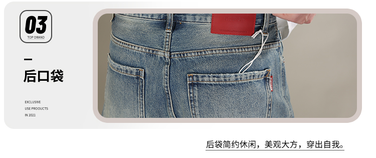 DRONKOO 2026 织带腰带表袋双7皮标织唛中厚牛仔长裤