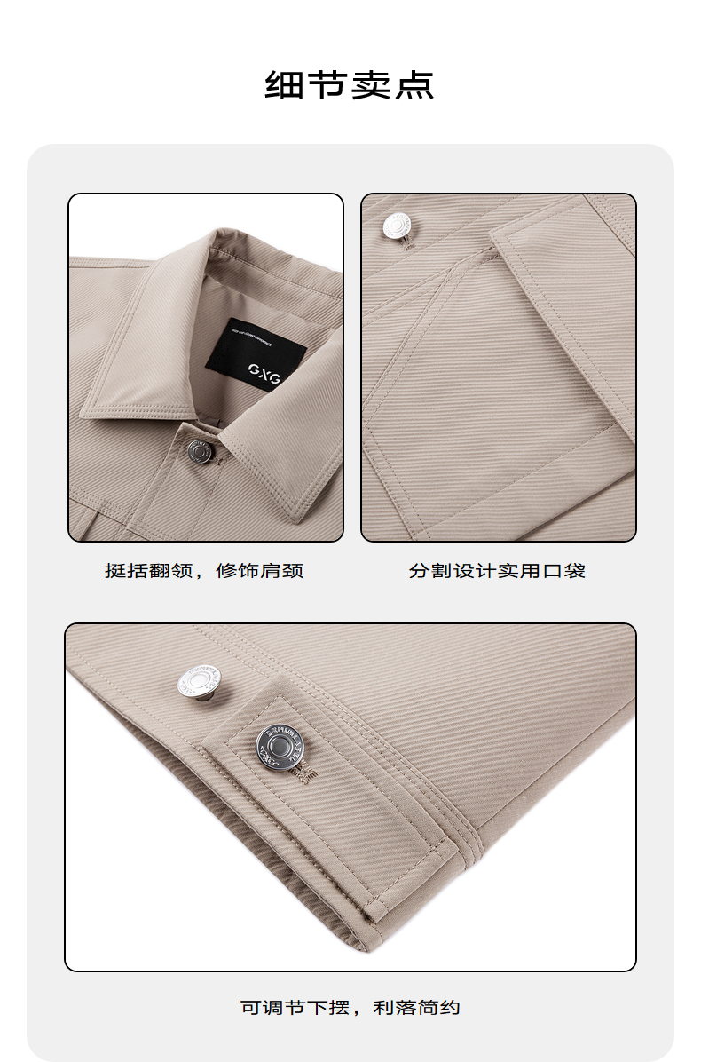 GXG男装 侧面分割立领休闲夹克廓形高级感通勤外套 2025秋季新品