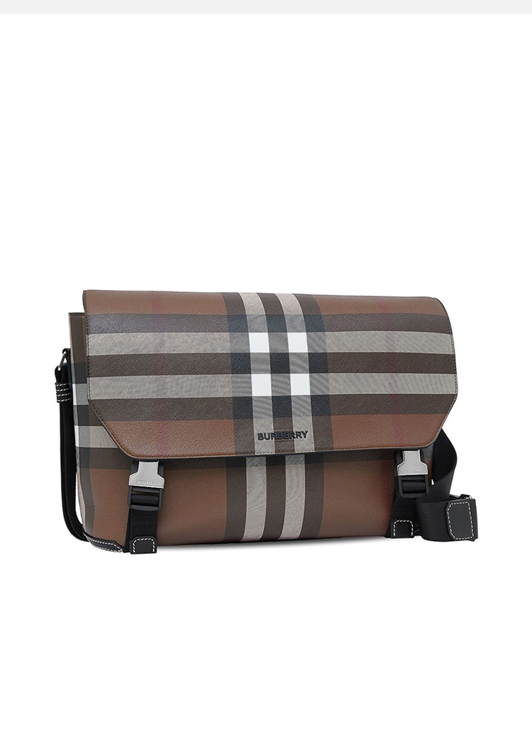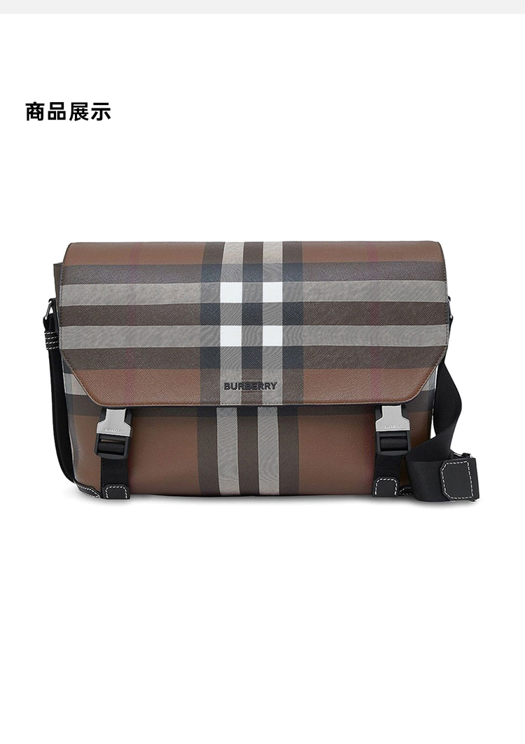 BURBERRY 巴宝莉 男士大号格纹拼皮革大号信使包 深桦木棕色 8054718 A8900