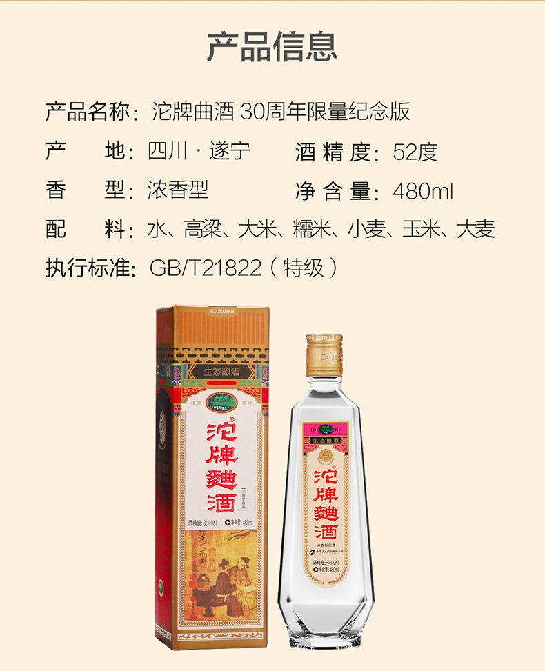 沱牌舍得沱牌曲酒52度480ml*1瓶装30周年复古纯粮食浓香型白酒