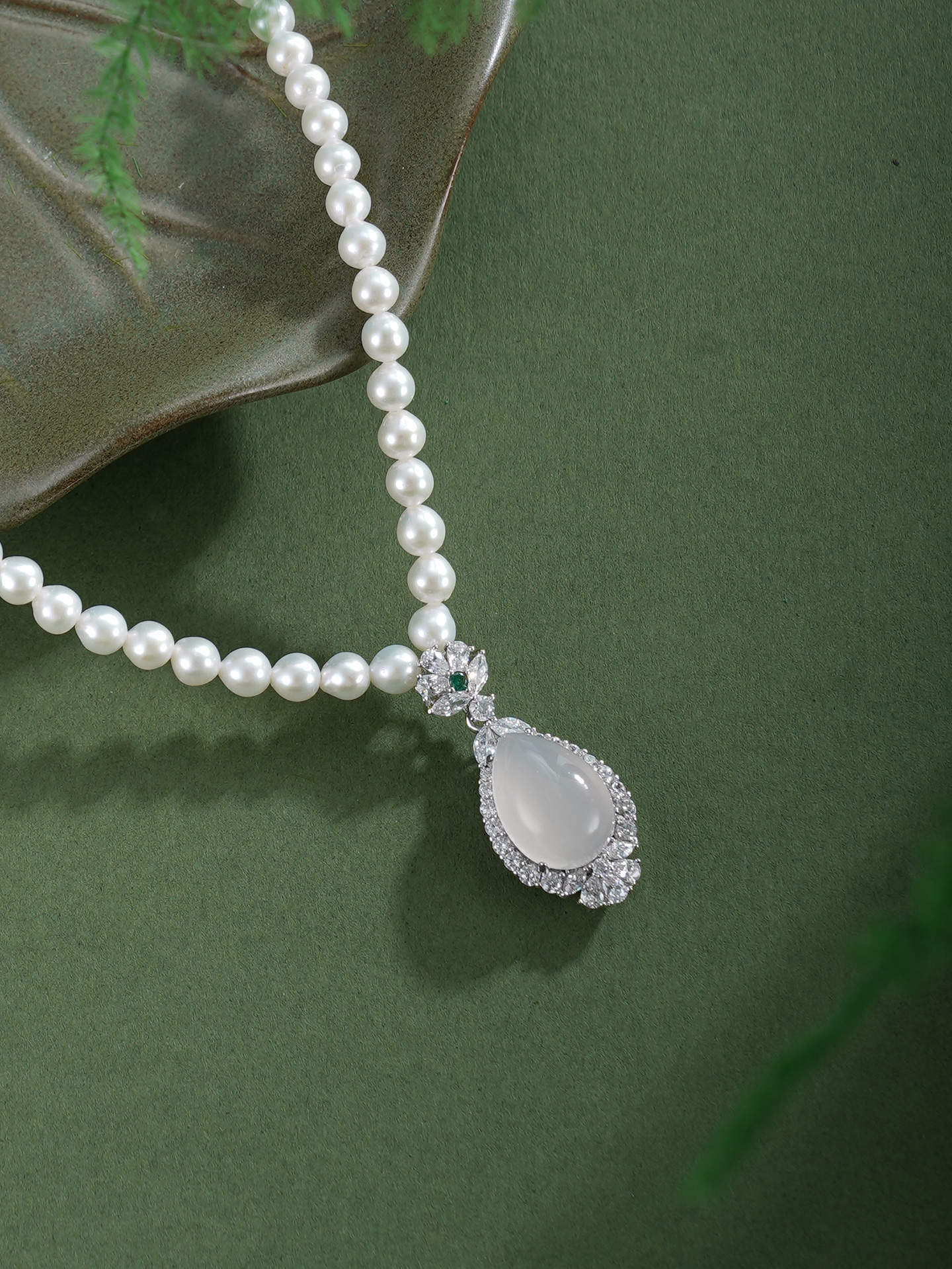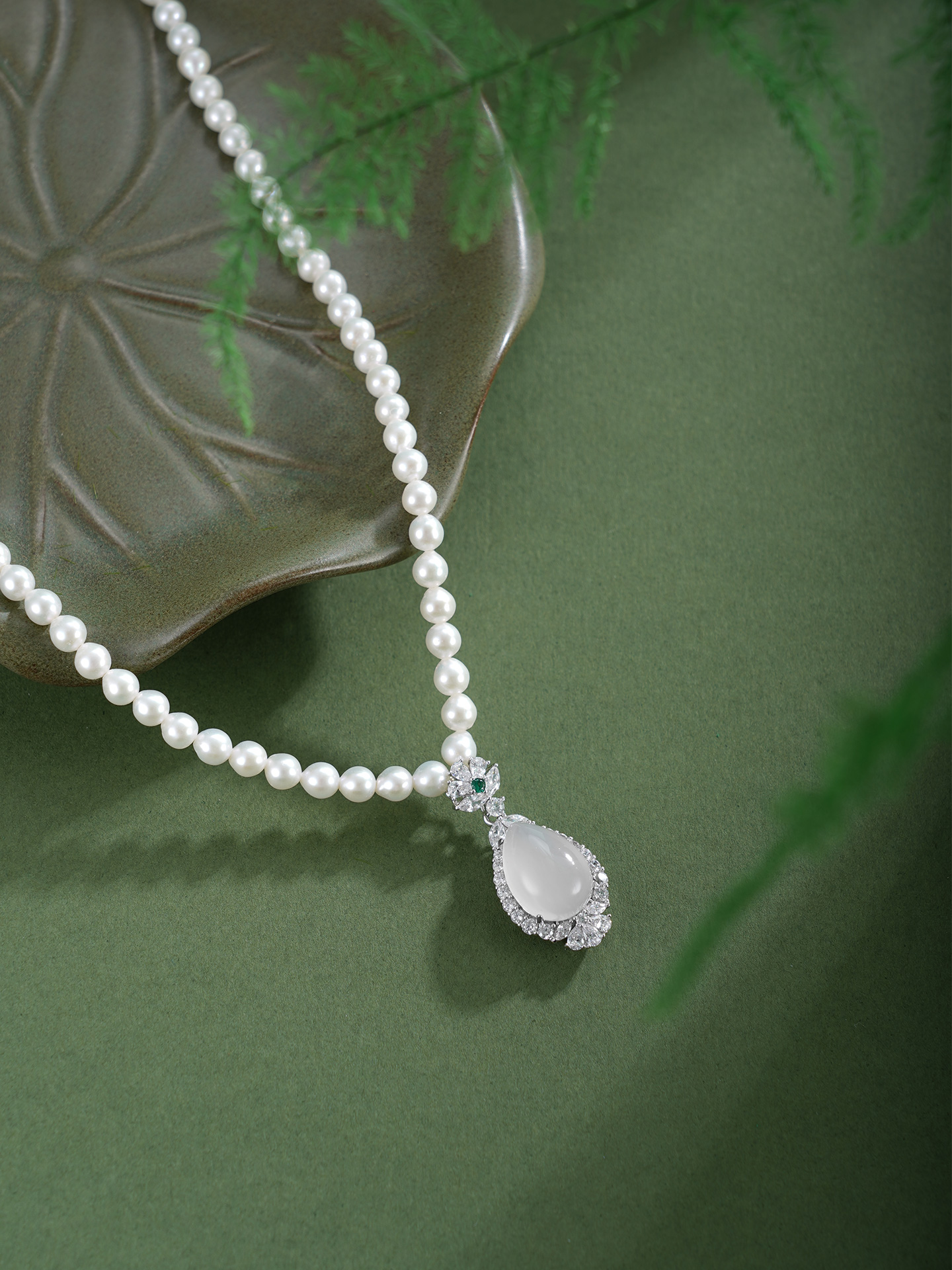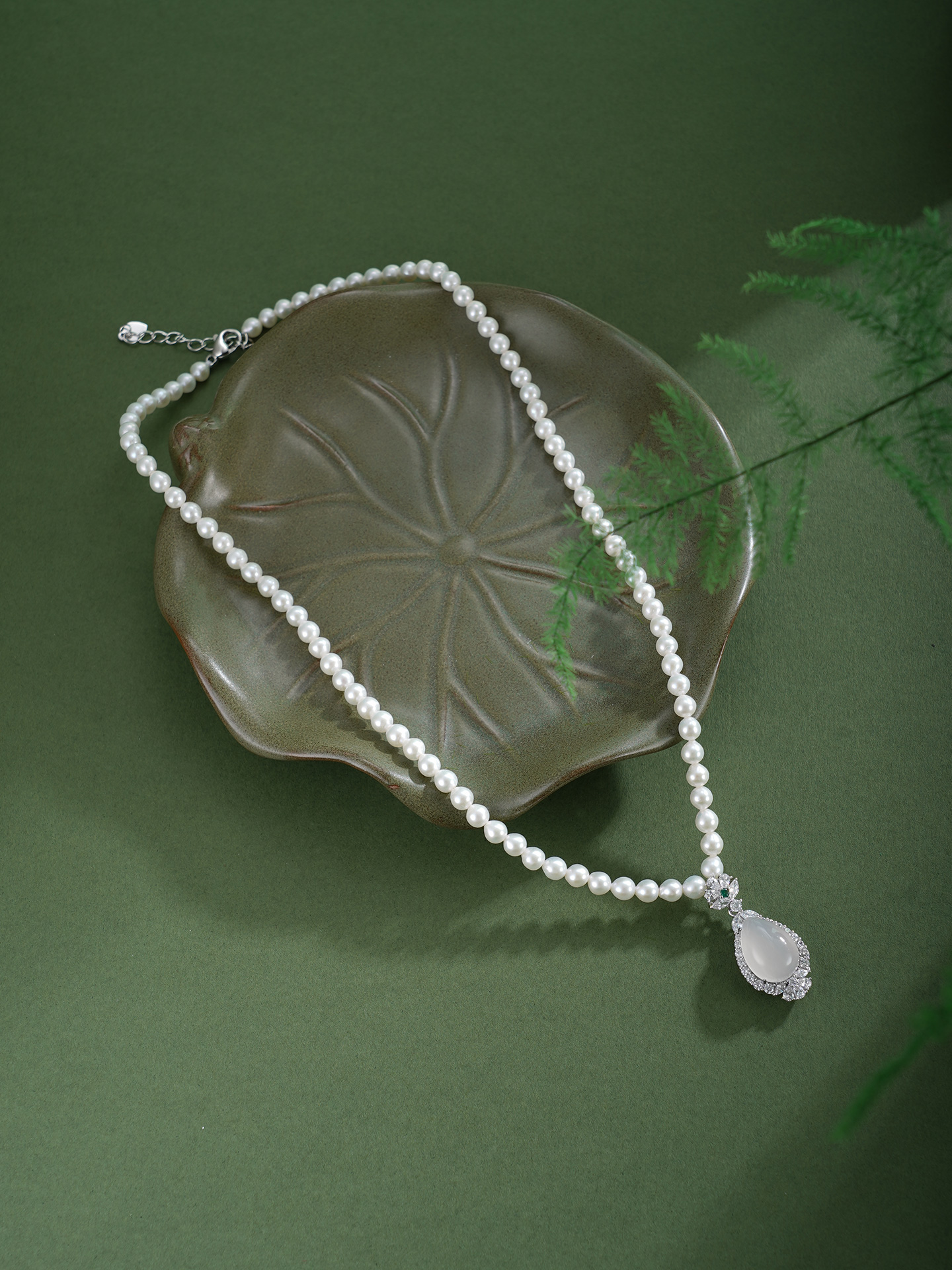 子佩集【涟光素影】珍珠项链【XXXL004】4mm珠白玉髓水滴2512