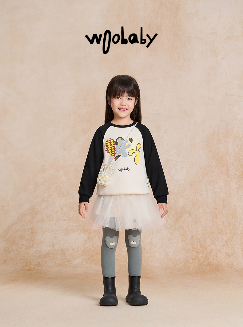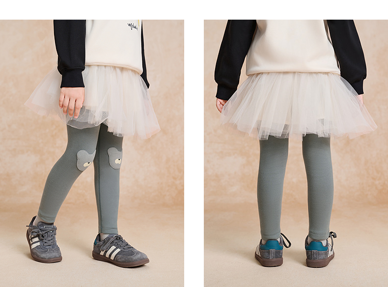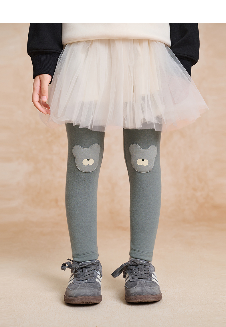 【woobaby】女童打底裤加绒保暖2025秋季新品弹力立体动物护膝长裤