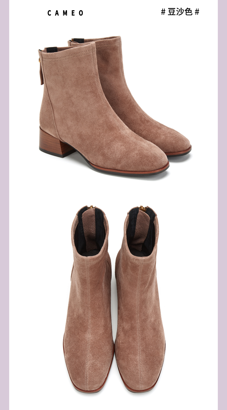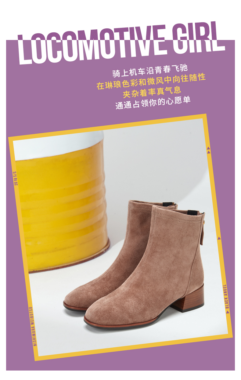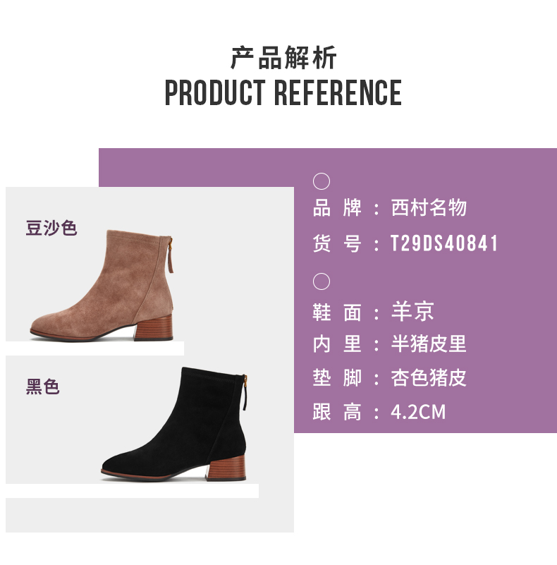 西村名物2020冬季新款中跟粗跟时尚舒适显瘦弹力靴女短靴T29DS40841