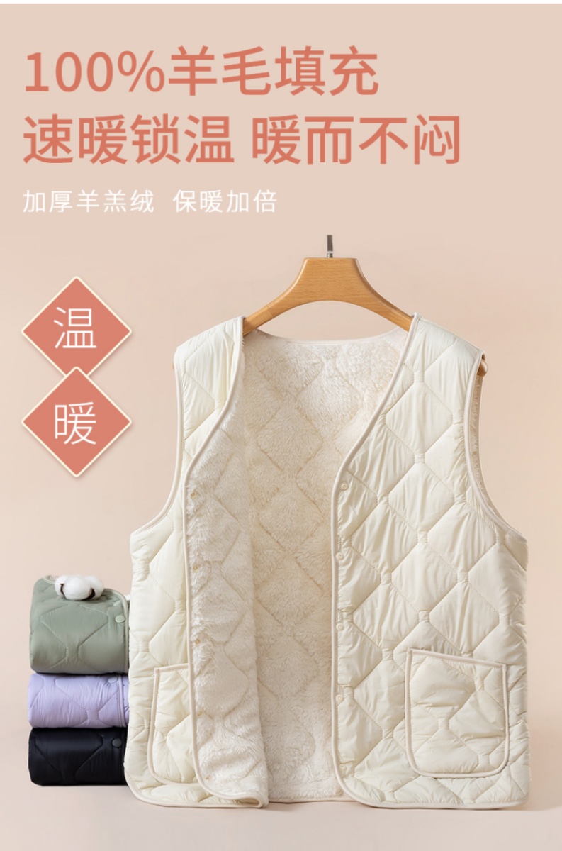 【双层绵羊毛马甲】双层夹绒,修身版型,上身轻盈不臃肿,可内搭可单穿!速暖锁温,柔软贴身!一衣多穿,搭配毛衣、开衫等!解锁N种风格【FM-X】