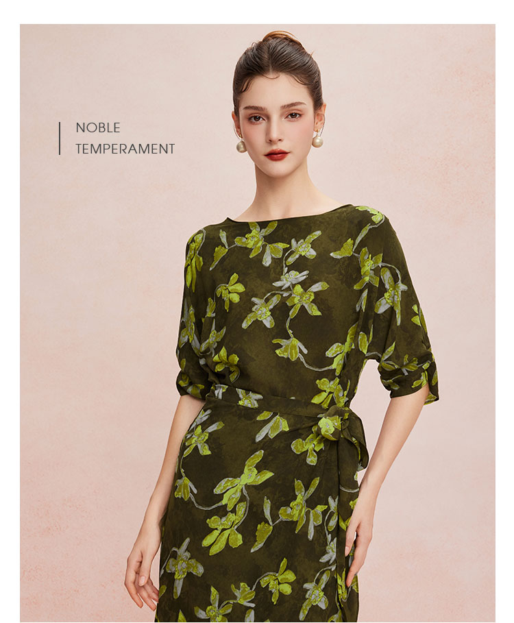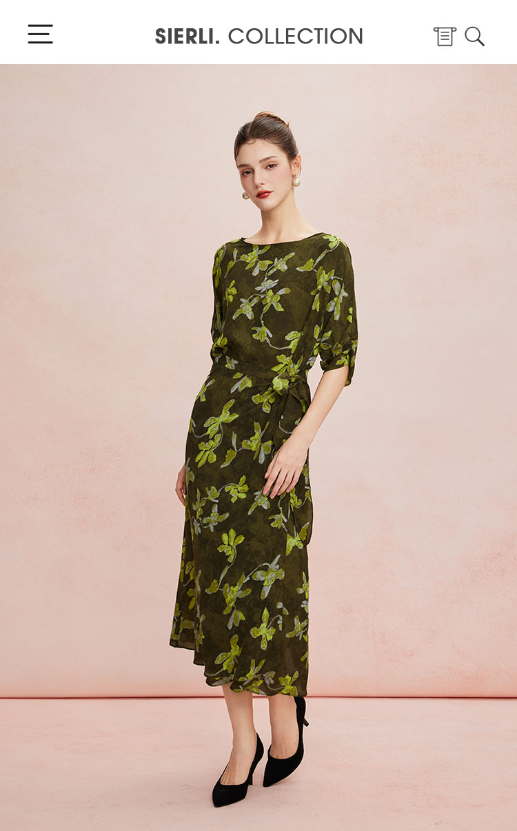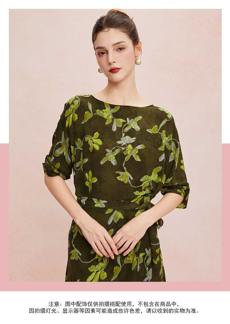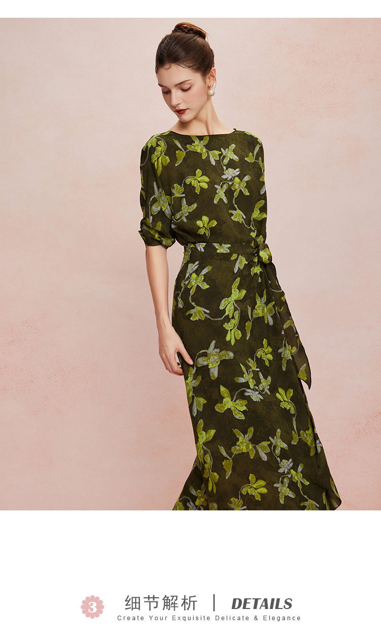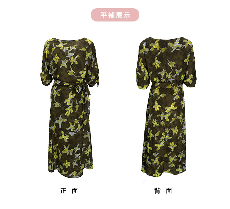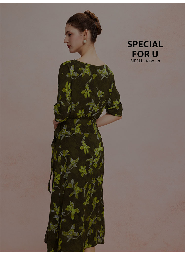 QF8E4斯尔丽25新款法式浪漫印花上身宽松下身包裹式挡小肚腩显高连衣裙