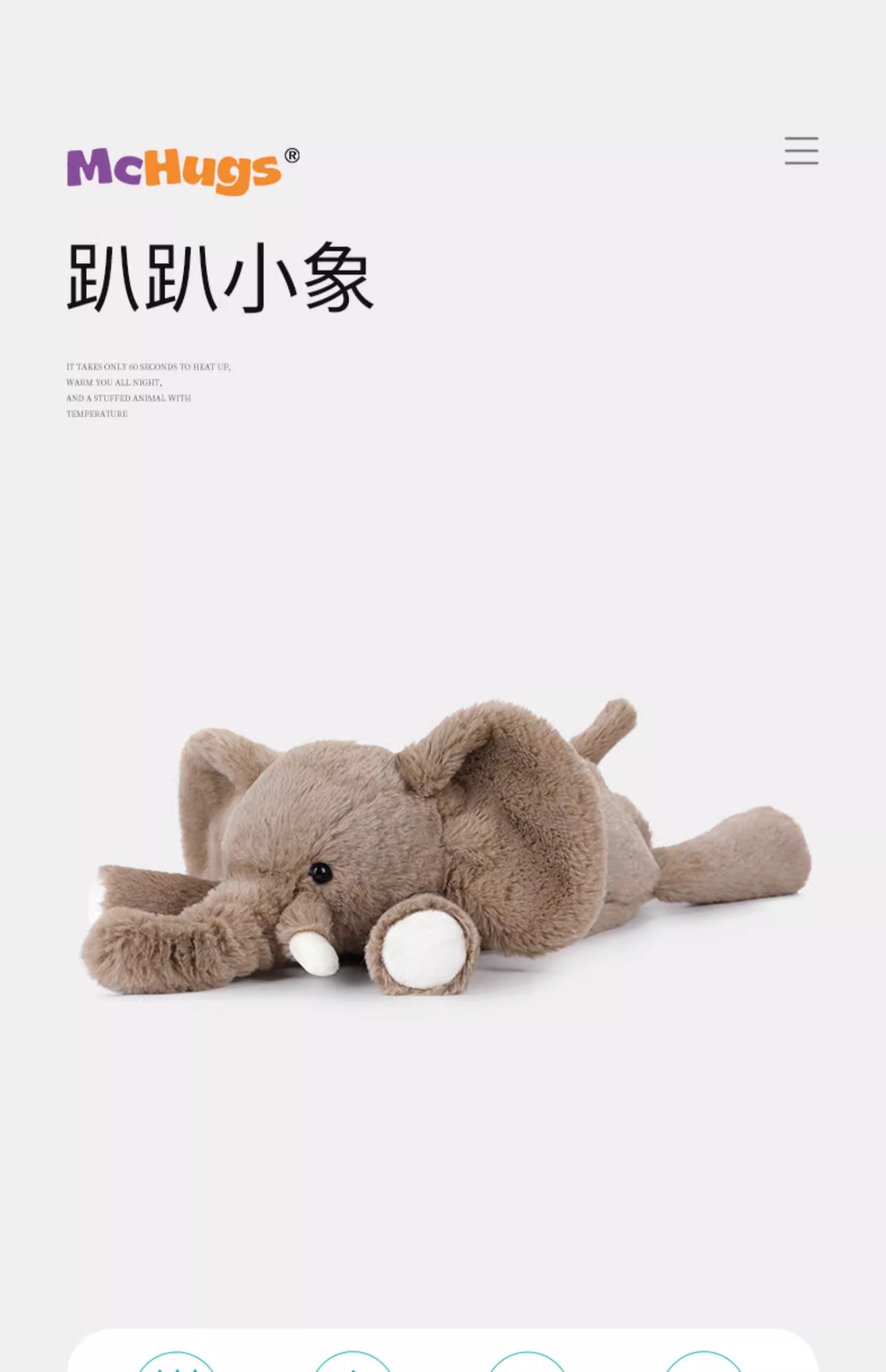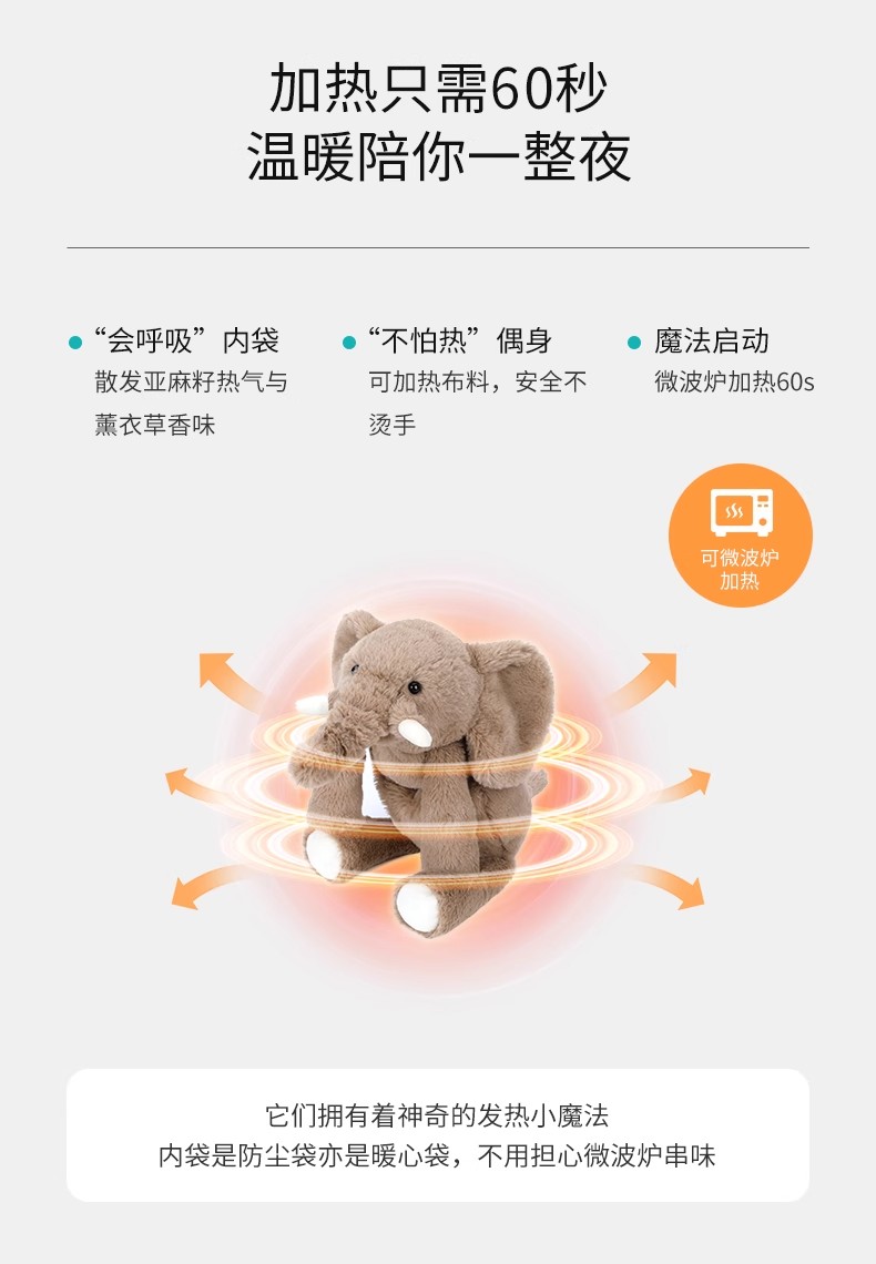 McHugs趴趴小象玩偶毛绒玩具可加热薰衣草味可爱抱睡安抚公仔送礼3岁+