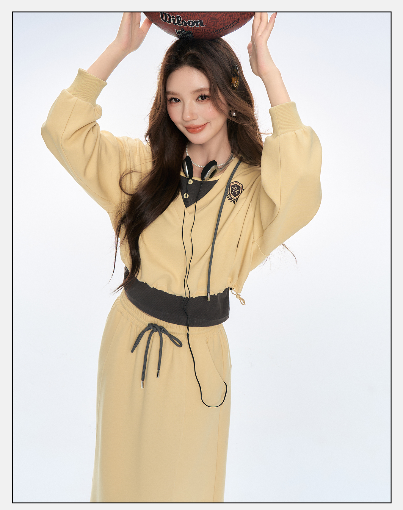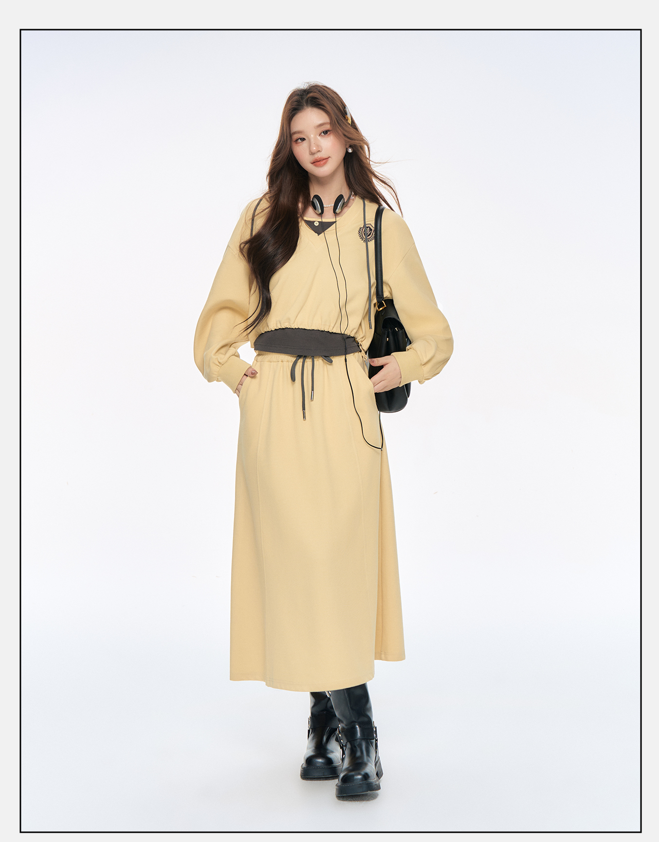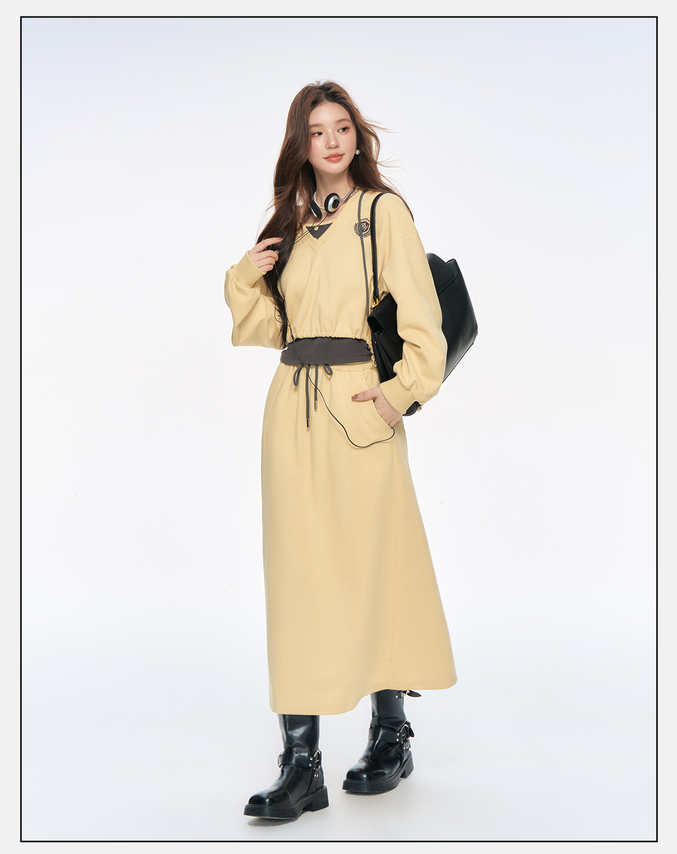 P&X设计师女装2025秋季慵懒风时尚拼接套装长裙 825314157 黄色