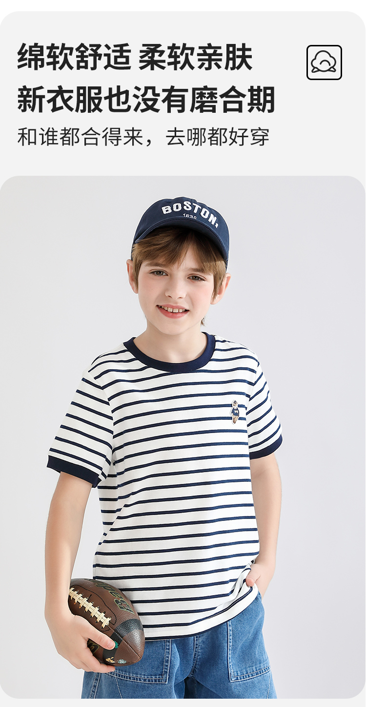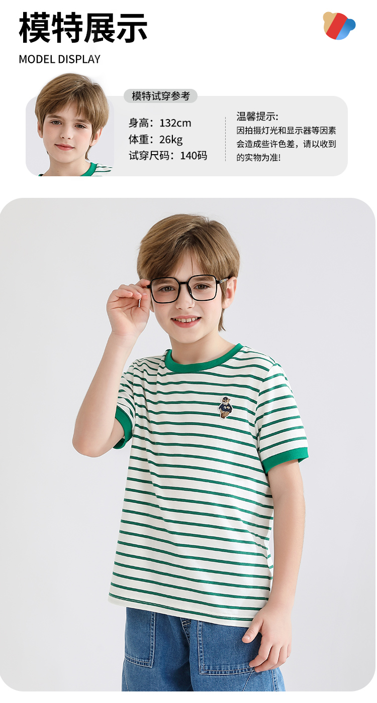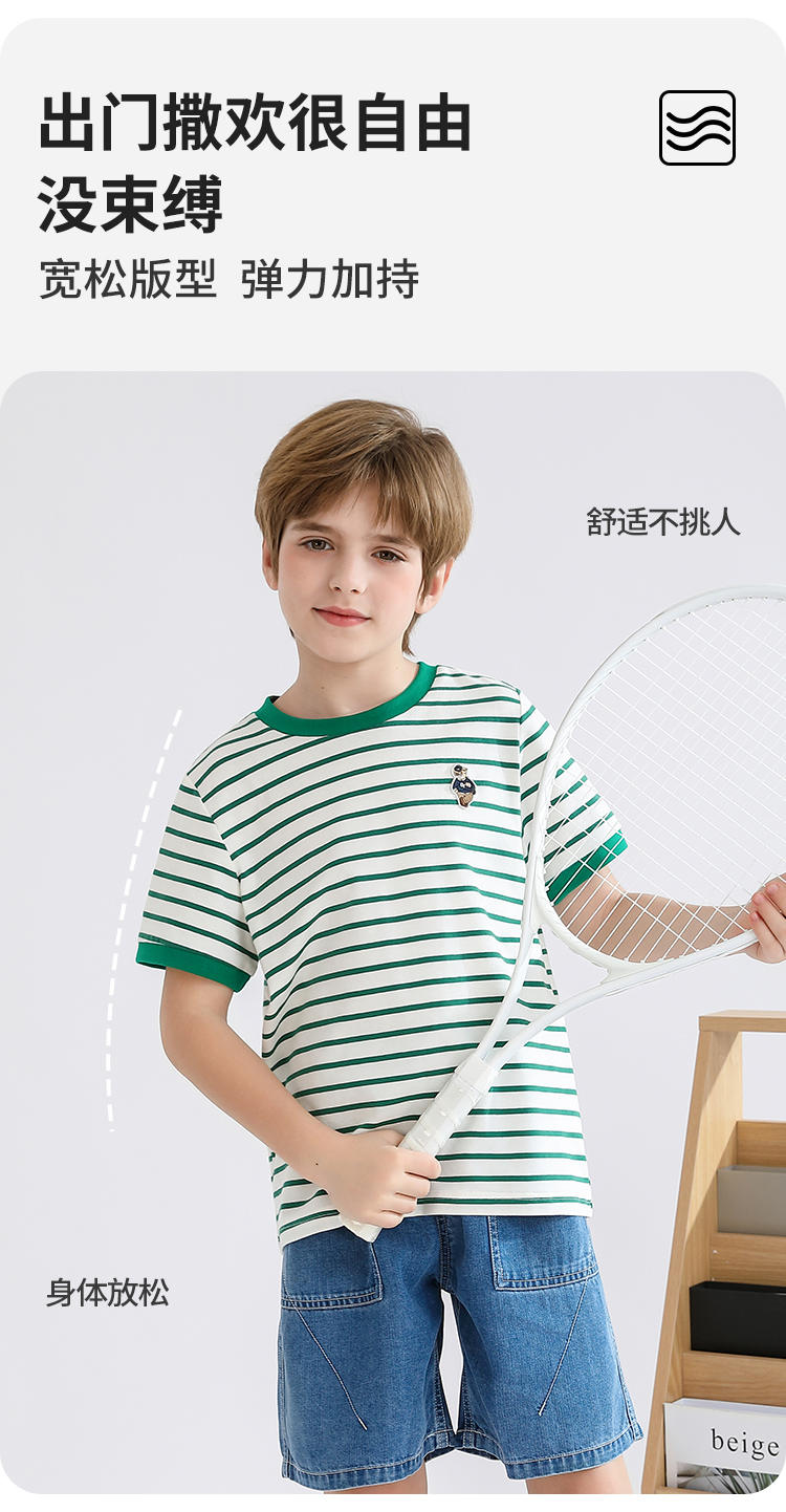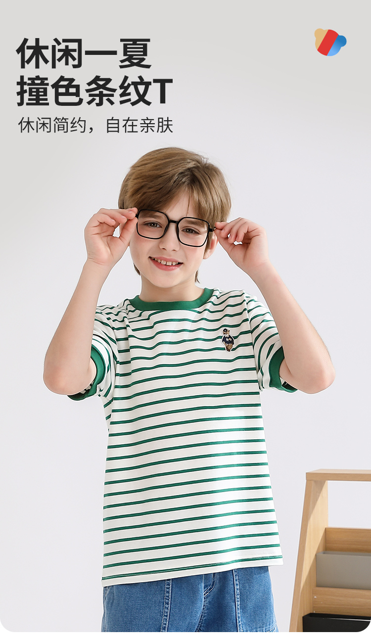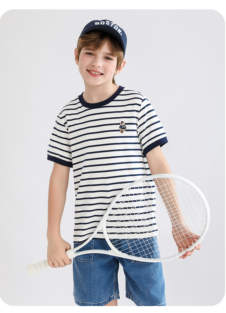 【140-170】【精典泰迪】男童短袖T恤儿童纯棉条纹上衣