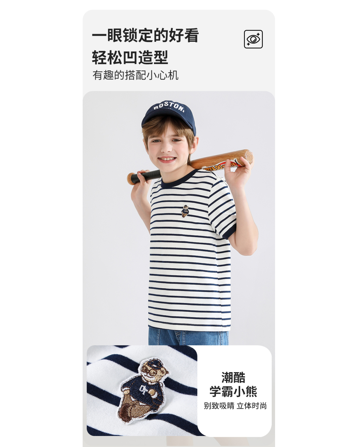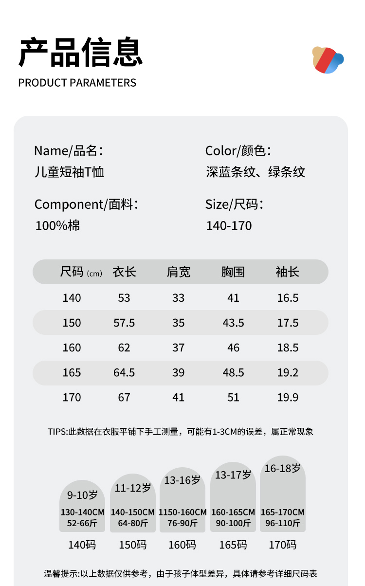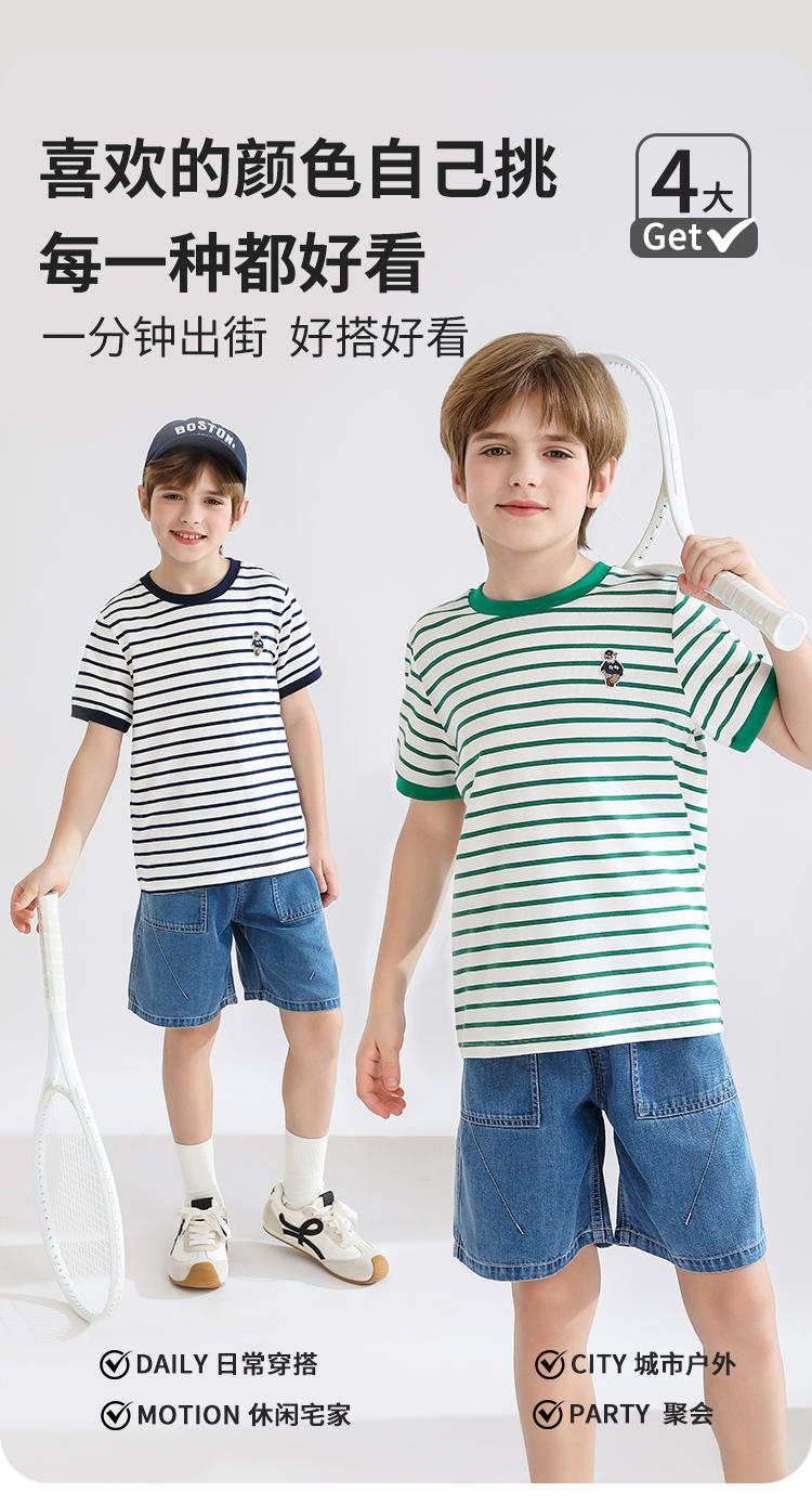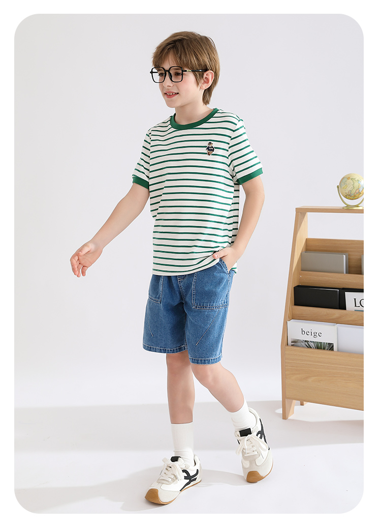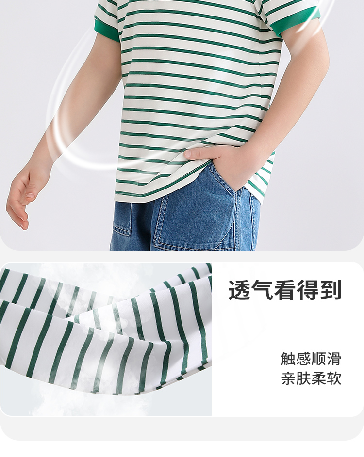 【140-170】【精典泰迪】男童短袖T恤儿童纯棉条纹上衣