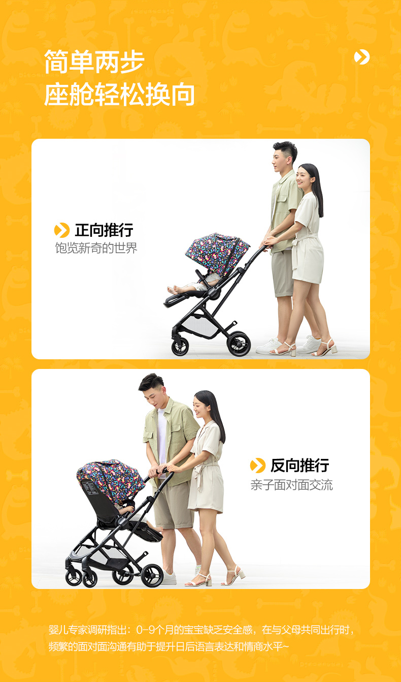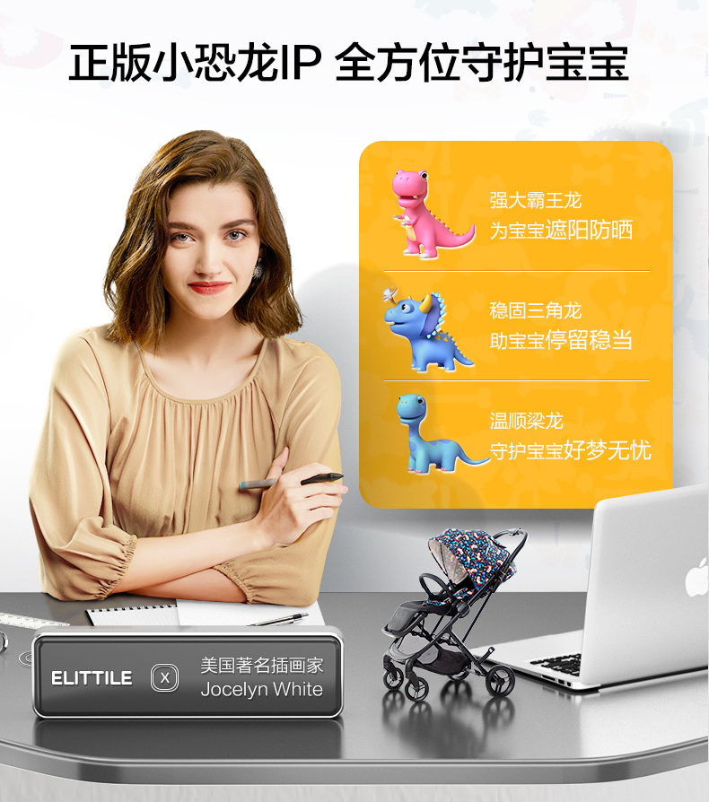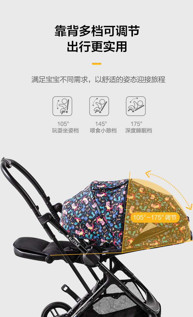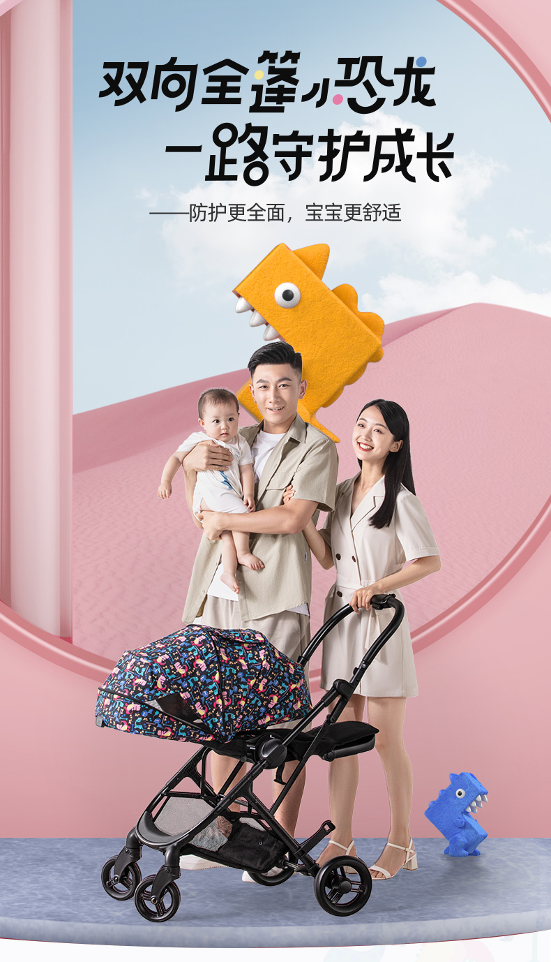 elittle逸乐途小恐龙婴儿推车双向轻便高景观可坐躺一键折叠伞车