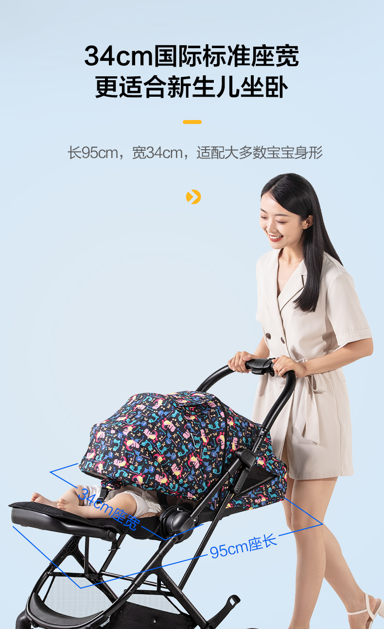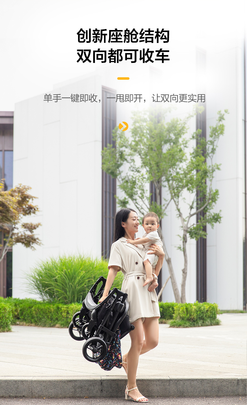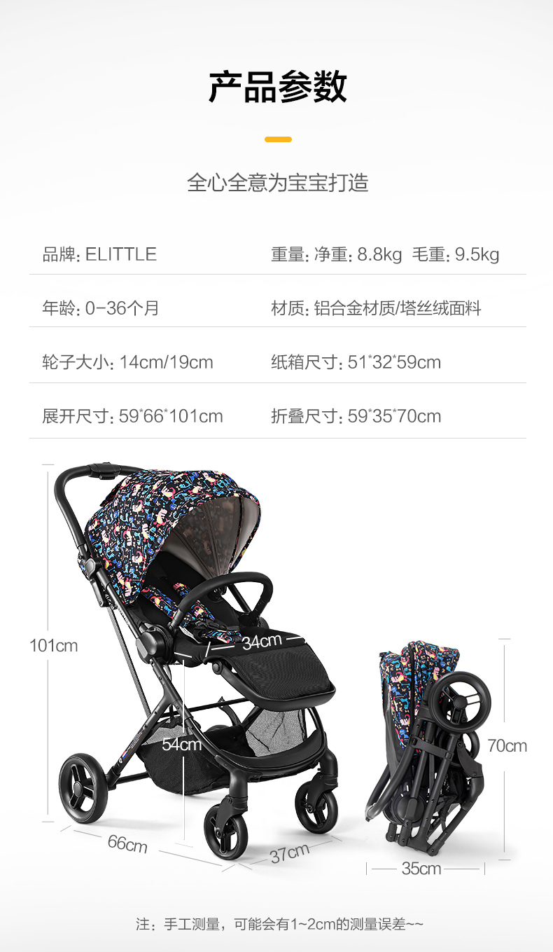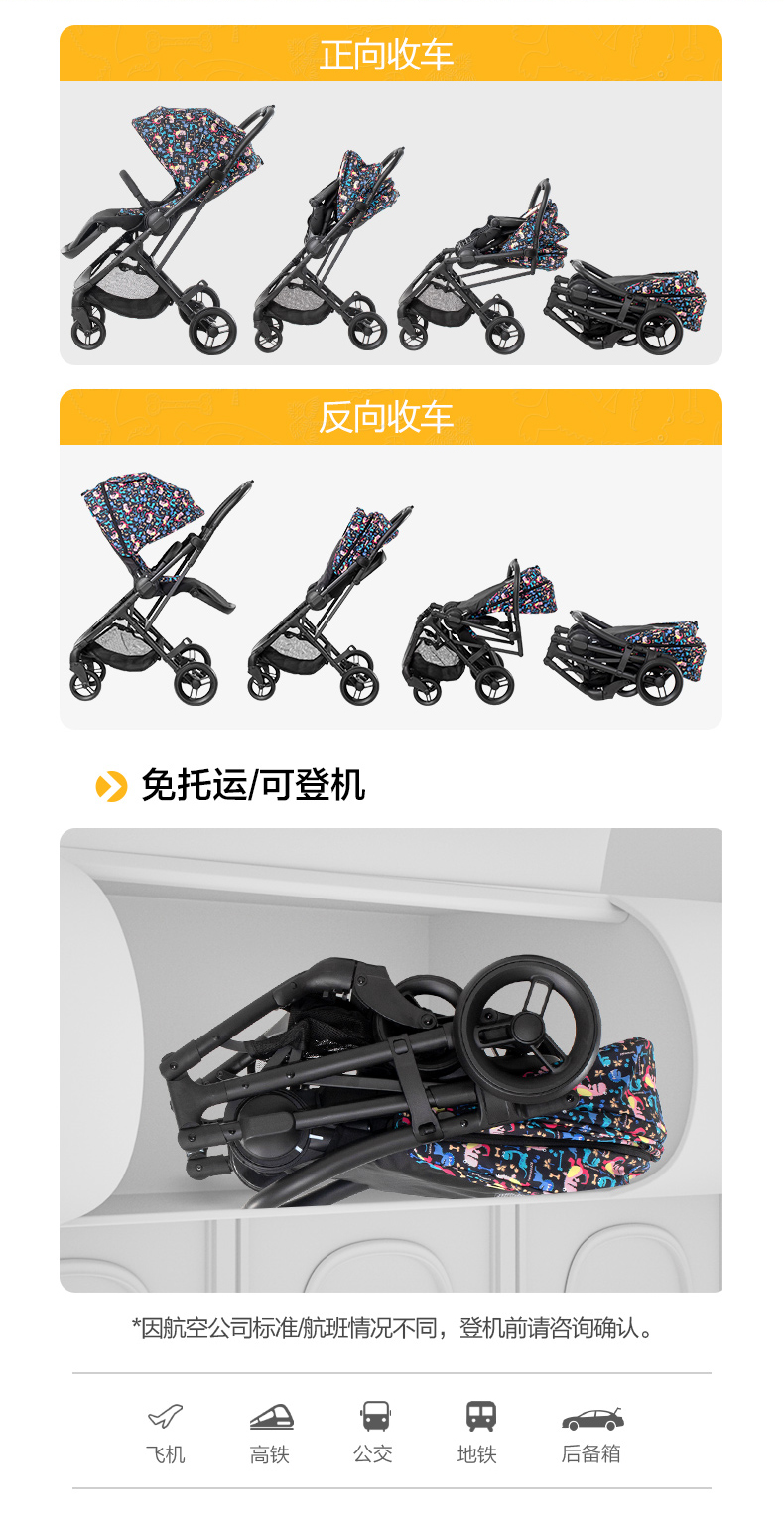 elittle逸乐途小恐龙婴儿推车双向轻便高景观可坐躺一键折叠伞车