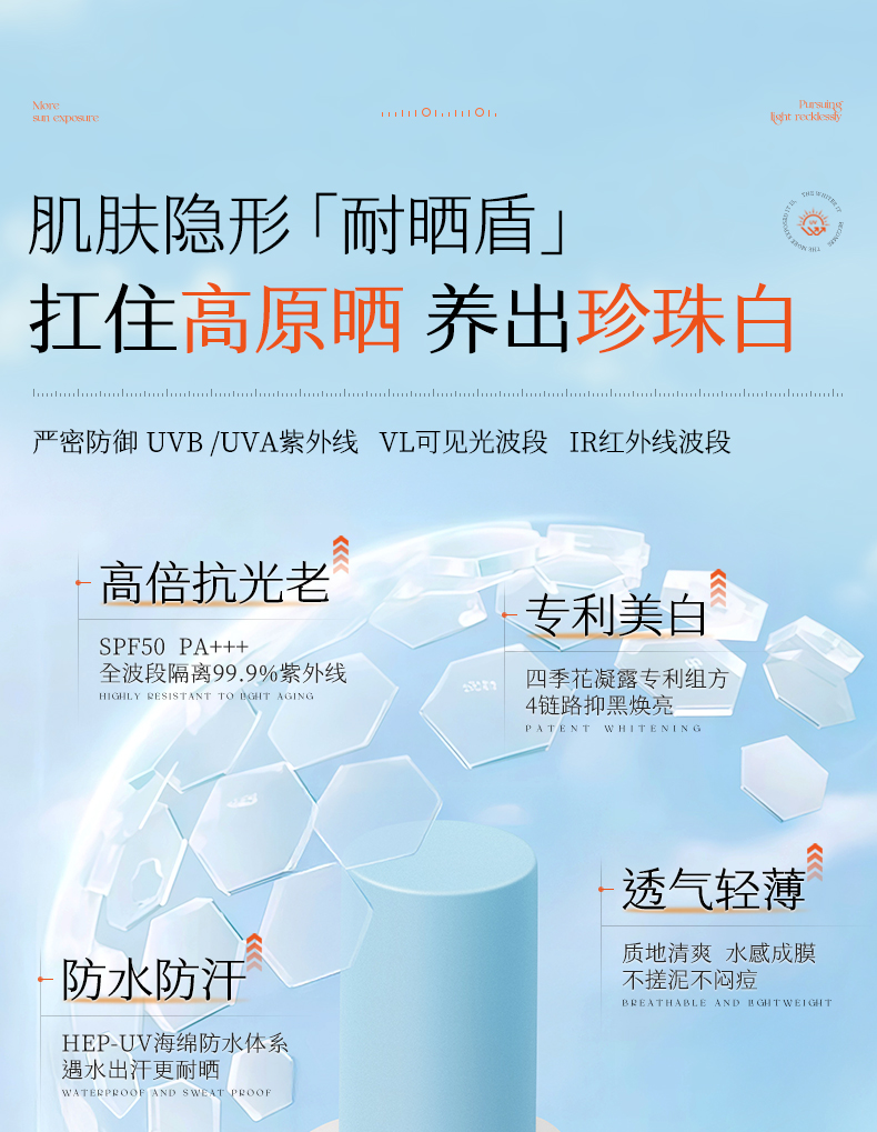 儒意美白保湿防晒乳50g 防晒霜50倍防紫外线户外防晒隔离清爽不油|儒意官方商城