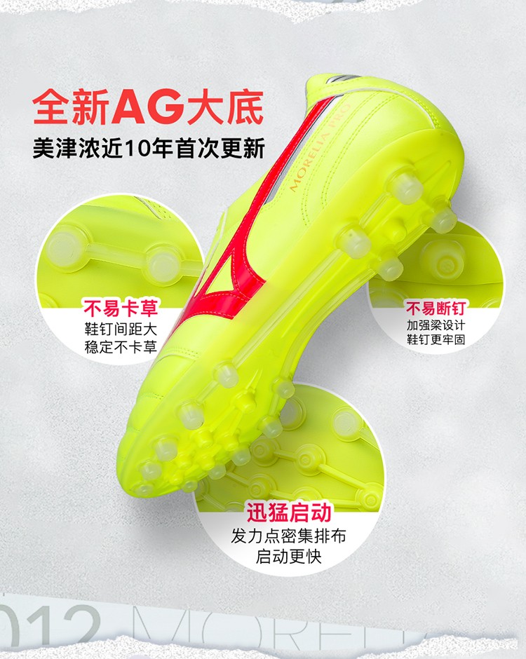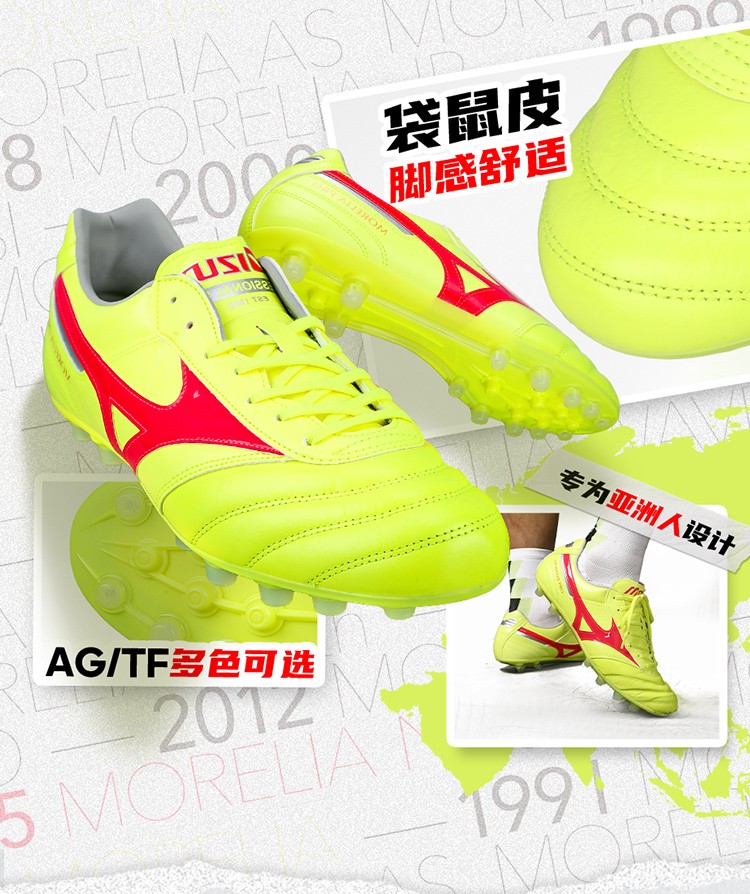 小李子美津浓莫雷拉2pro短钉AG碎钉TF袋鼠皮宽脚足球鞋男款青少年