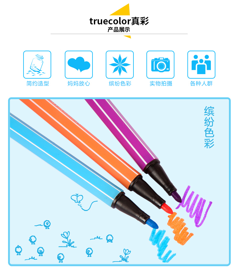 真彩可洗水彩笔儿童文具涂鸦绘画