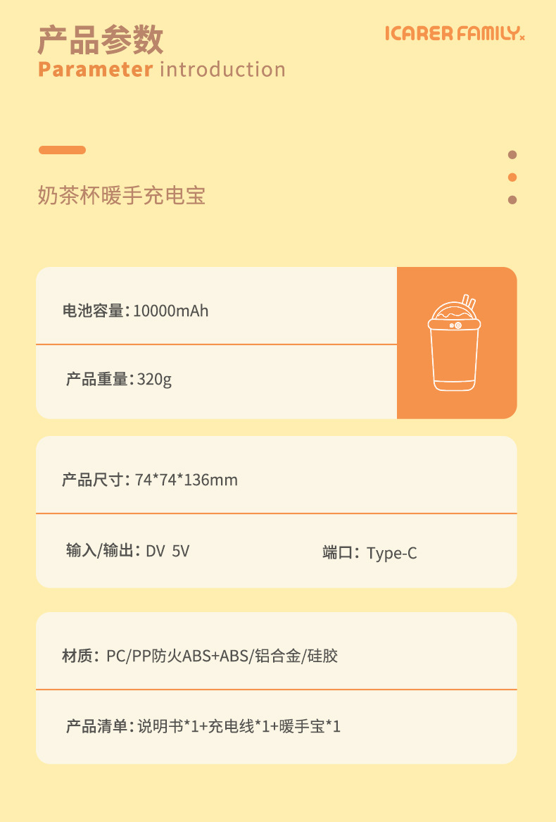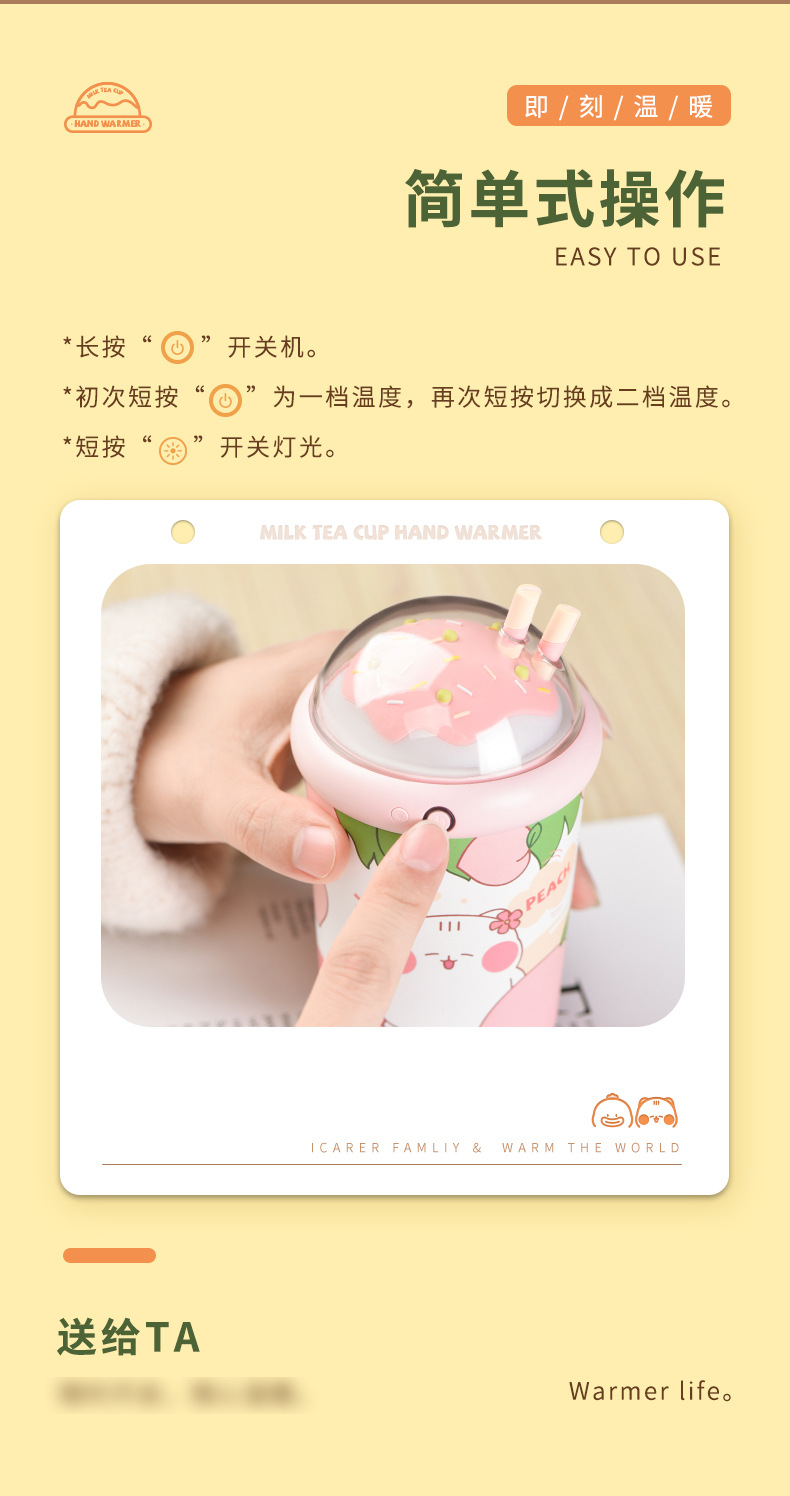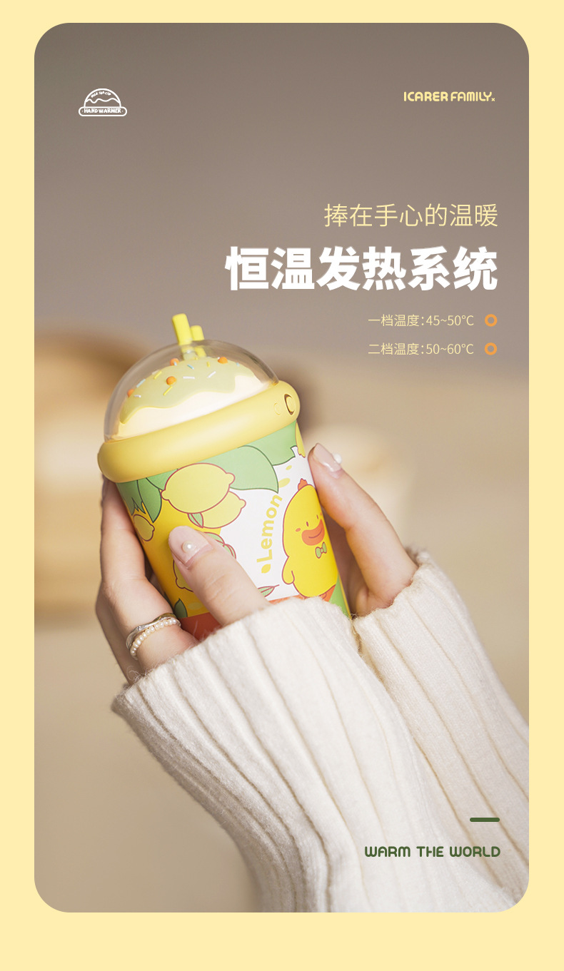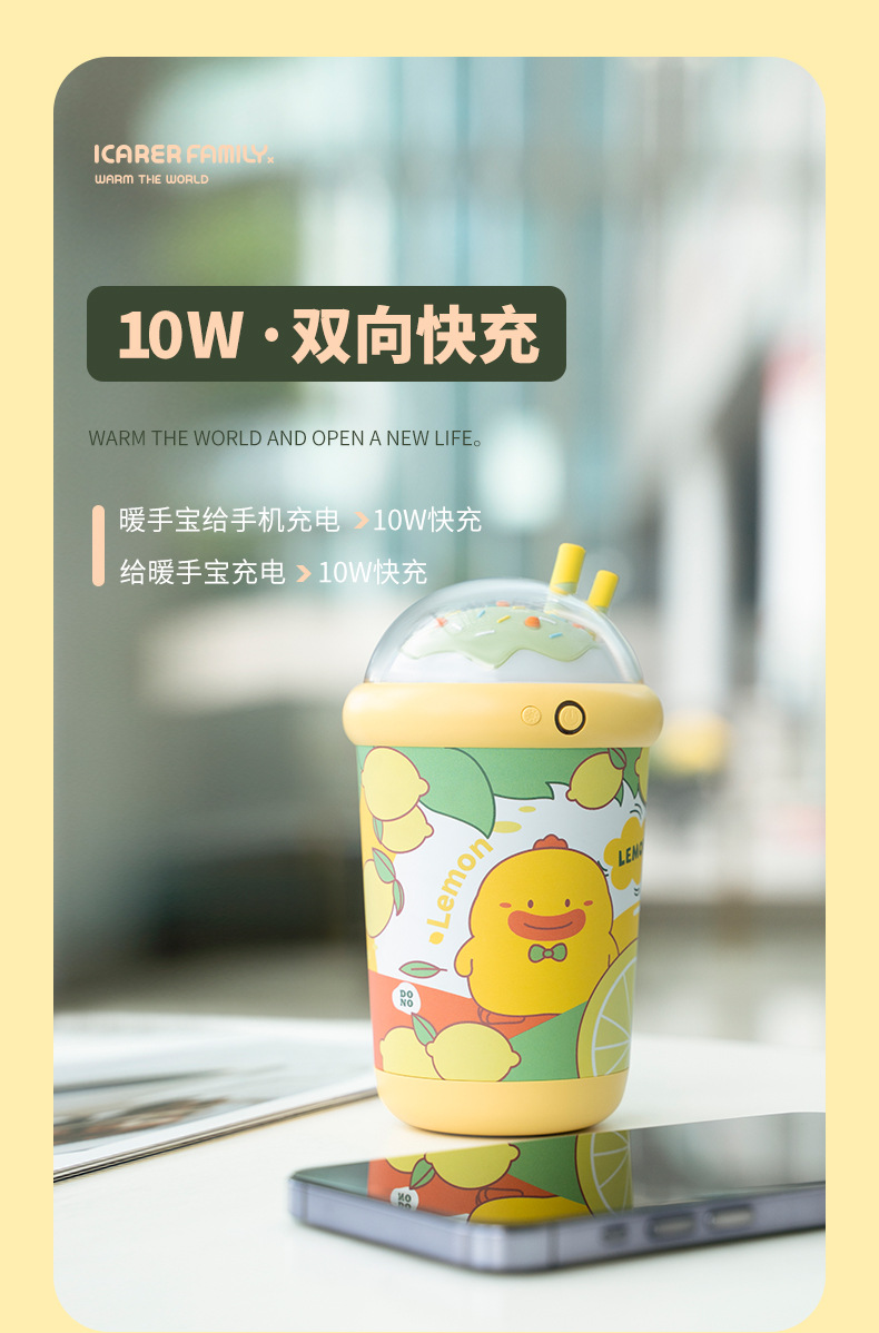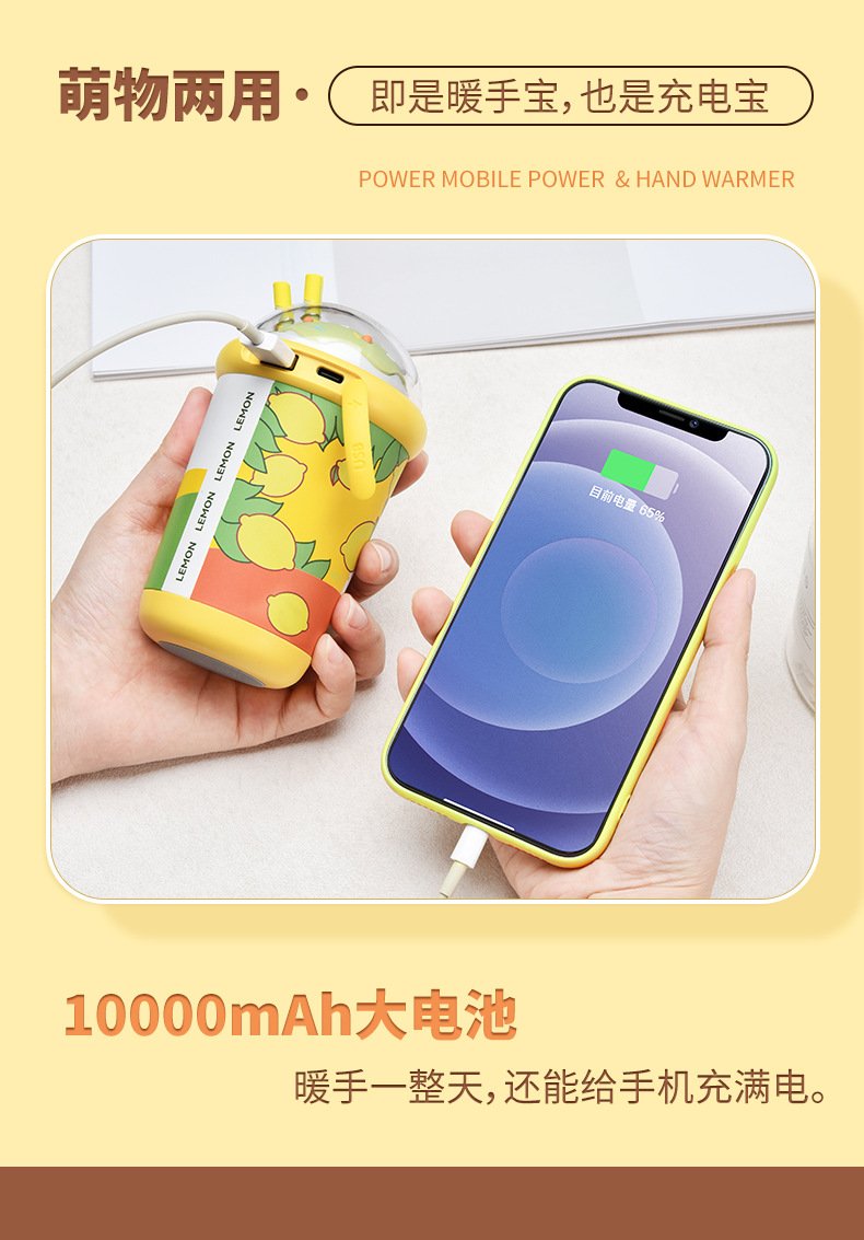 乐亿奶茶杯暖手宝10000mAHusb充电宝二合一便携发热器手捂暖宝宝