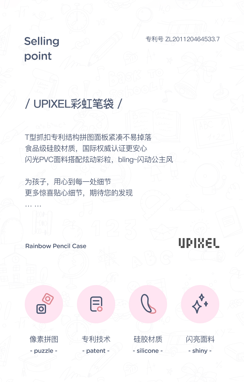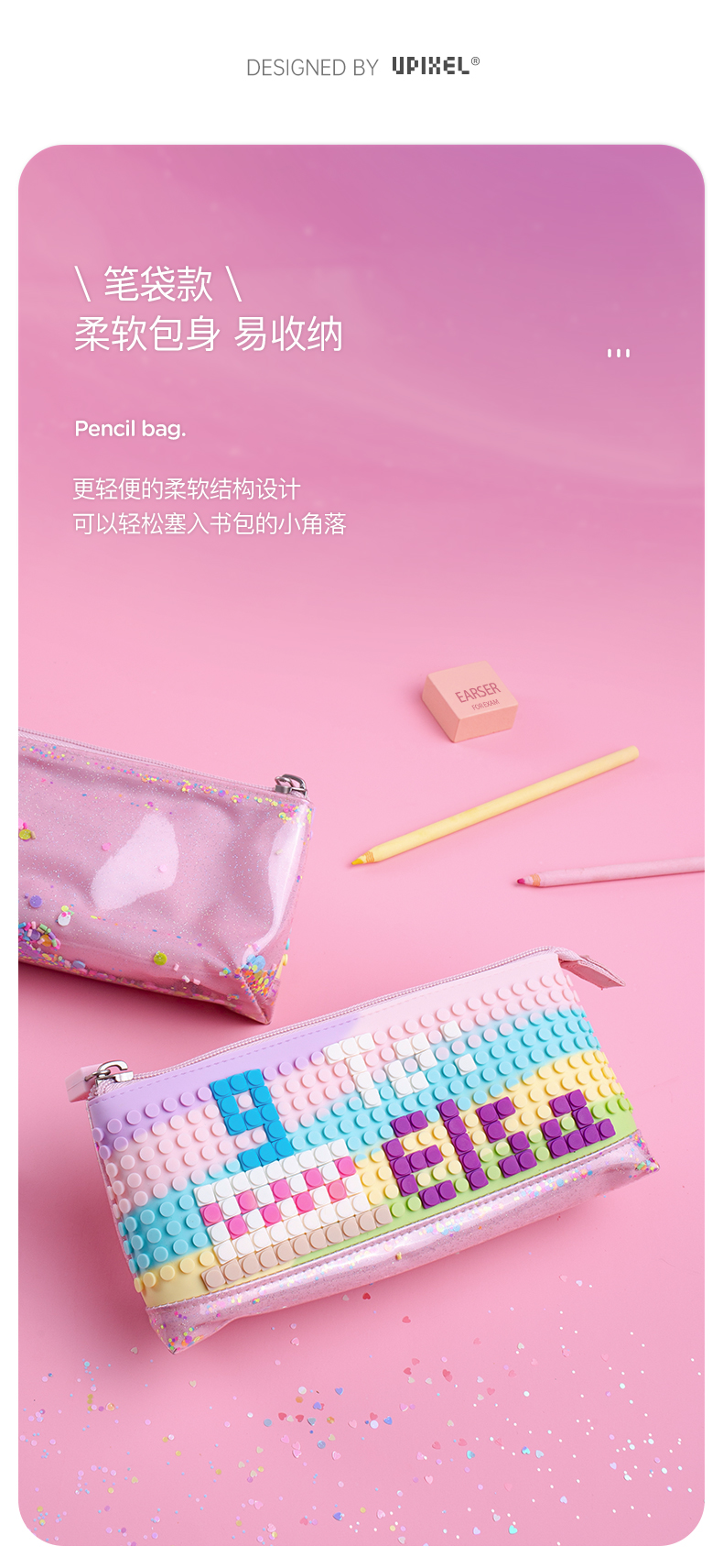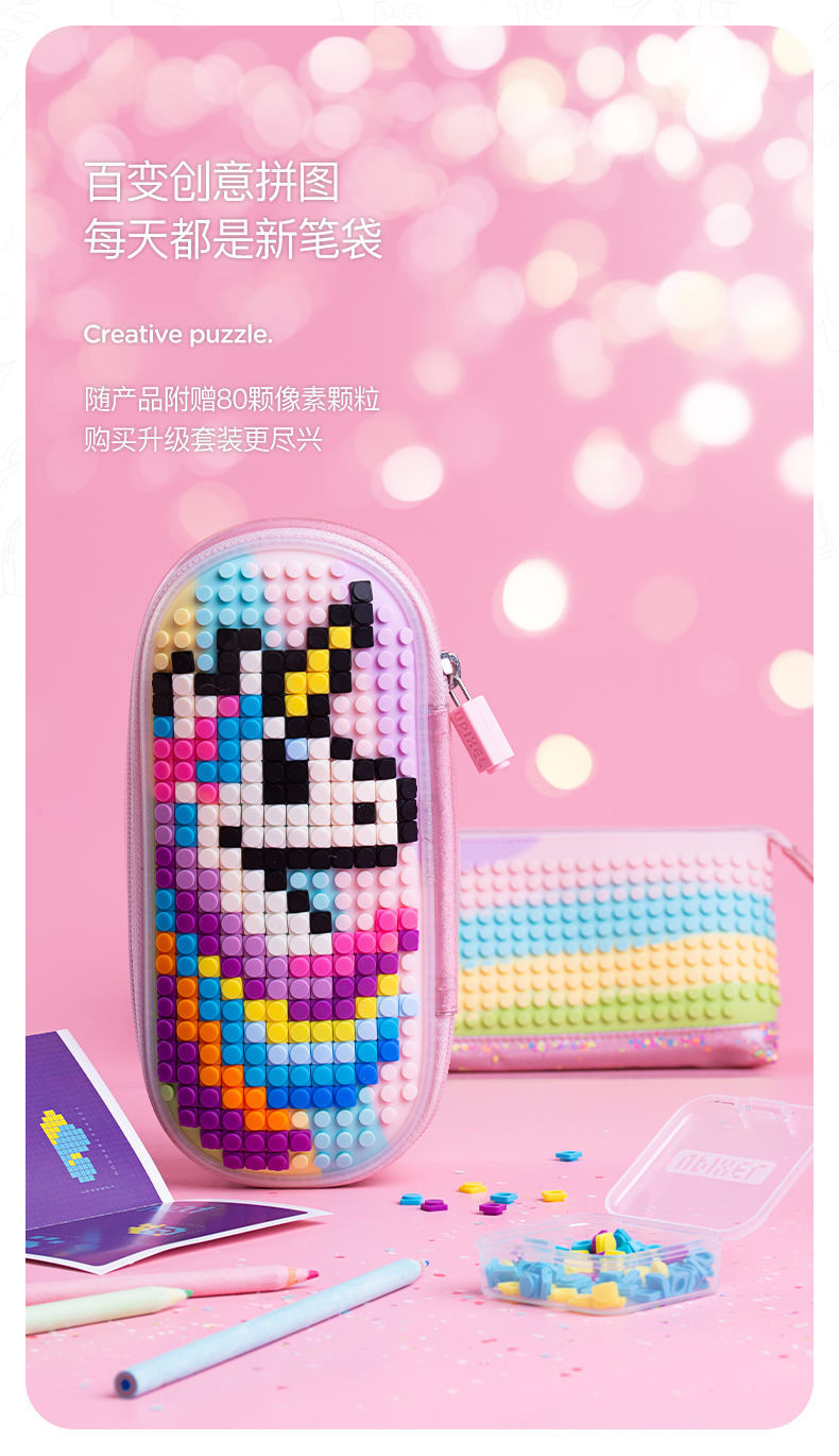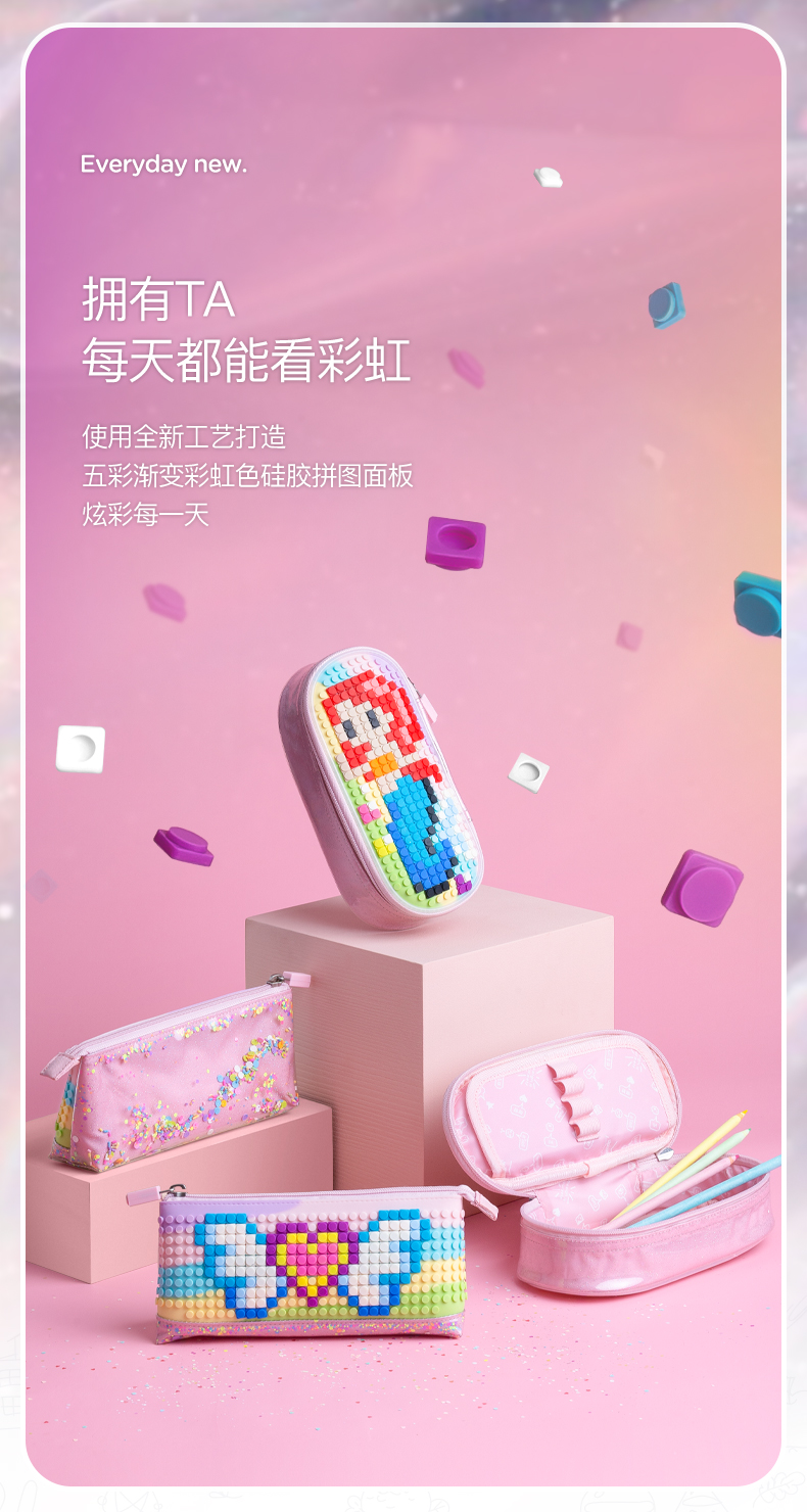 顽意超级学院笔袋WY-B012彩虹色小学生可爱高颜值ins儿童笔盒女童流沙文具盒新款