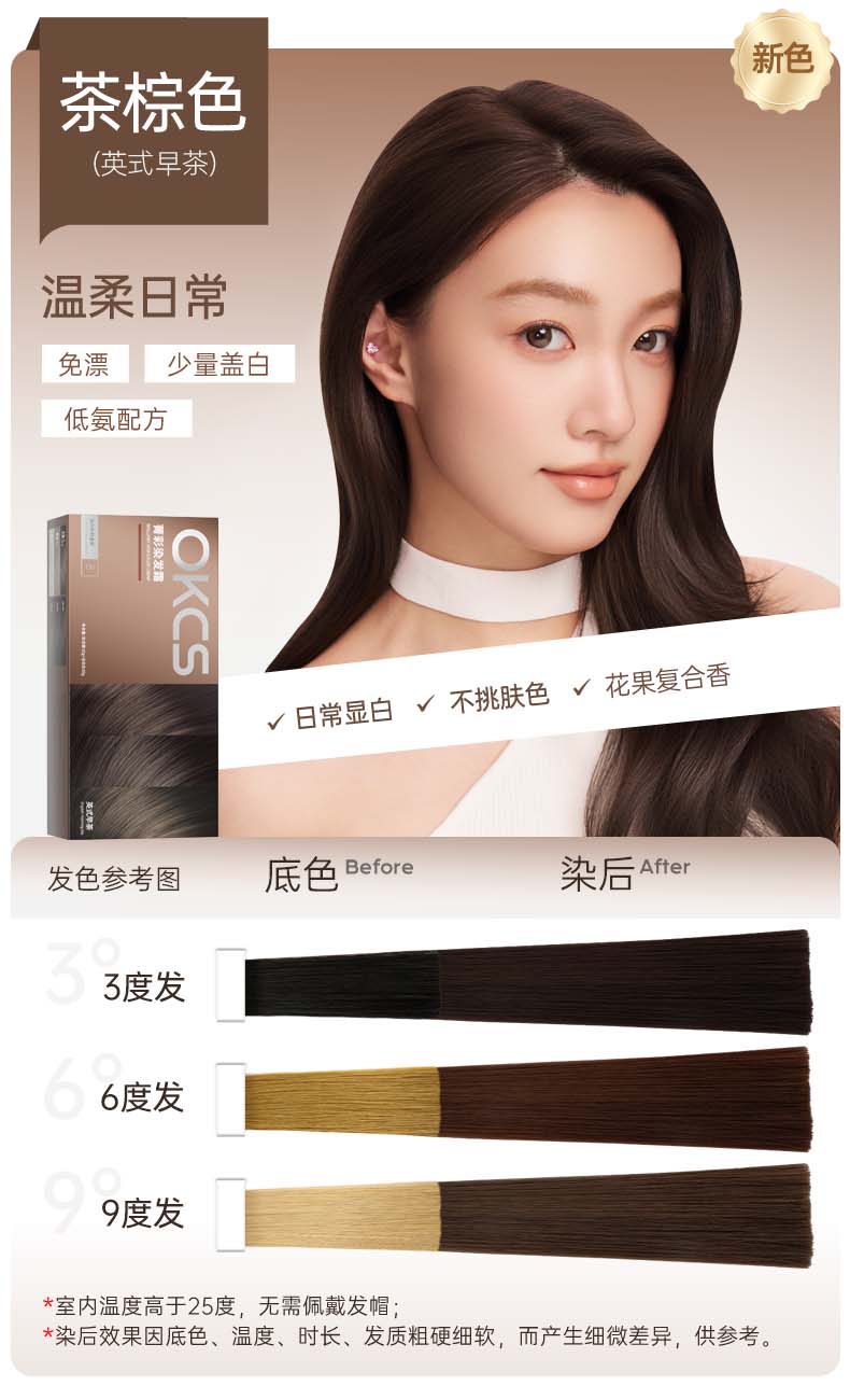 严选 | OKCS染发膏染发剂植物黑茶色黑色盖白 男女士专用