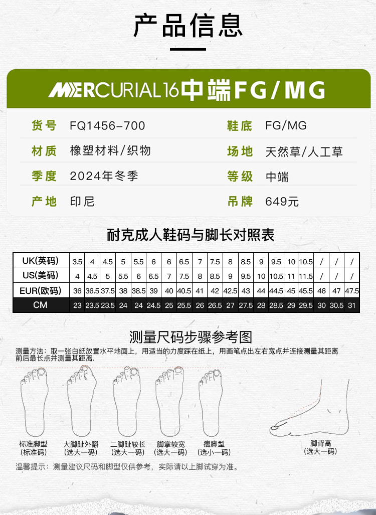 小李子NIKE耐克刺客16中端高帮FG/MG混合钉成人足球鞋男FQ1456-700