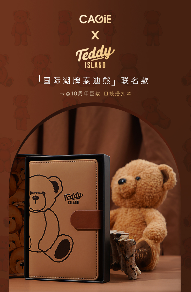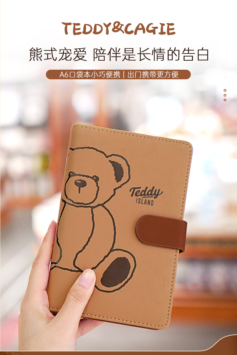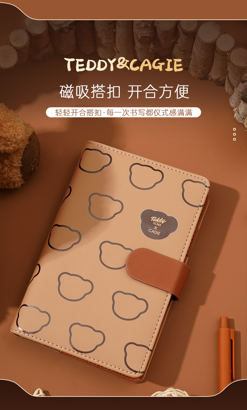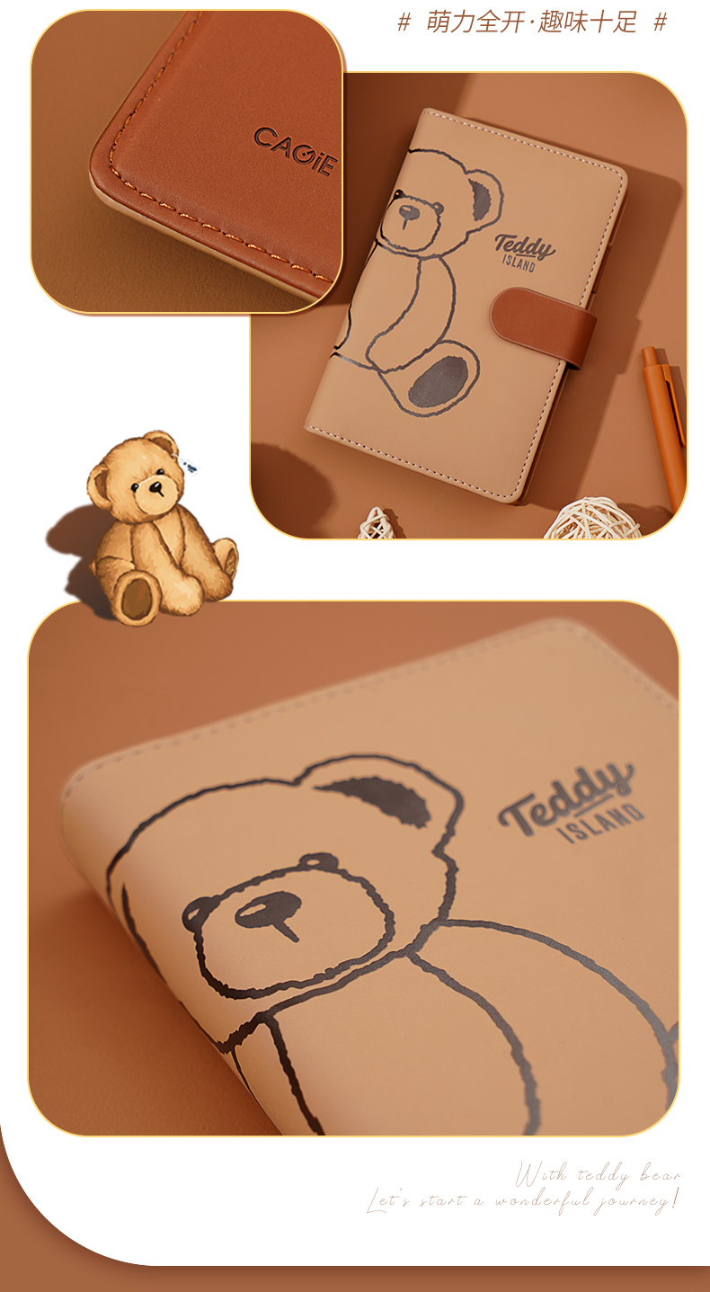 卡杰泰迪熊系列撞色搭扣本A6/CA6J-TD02记事本子少女心笔记本本子创意活页本可拆卸可爱少女手账本学生日记