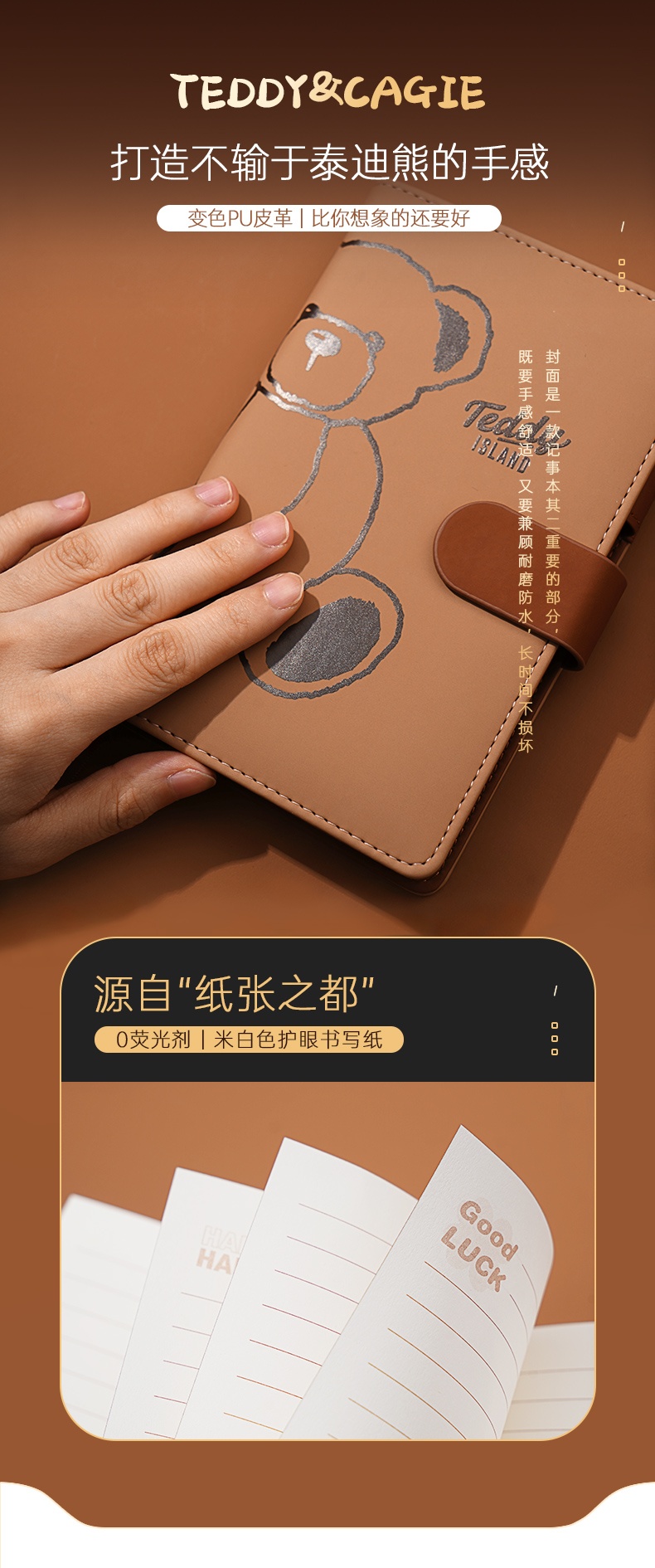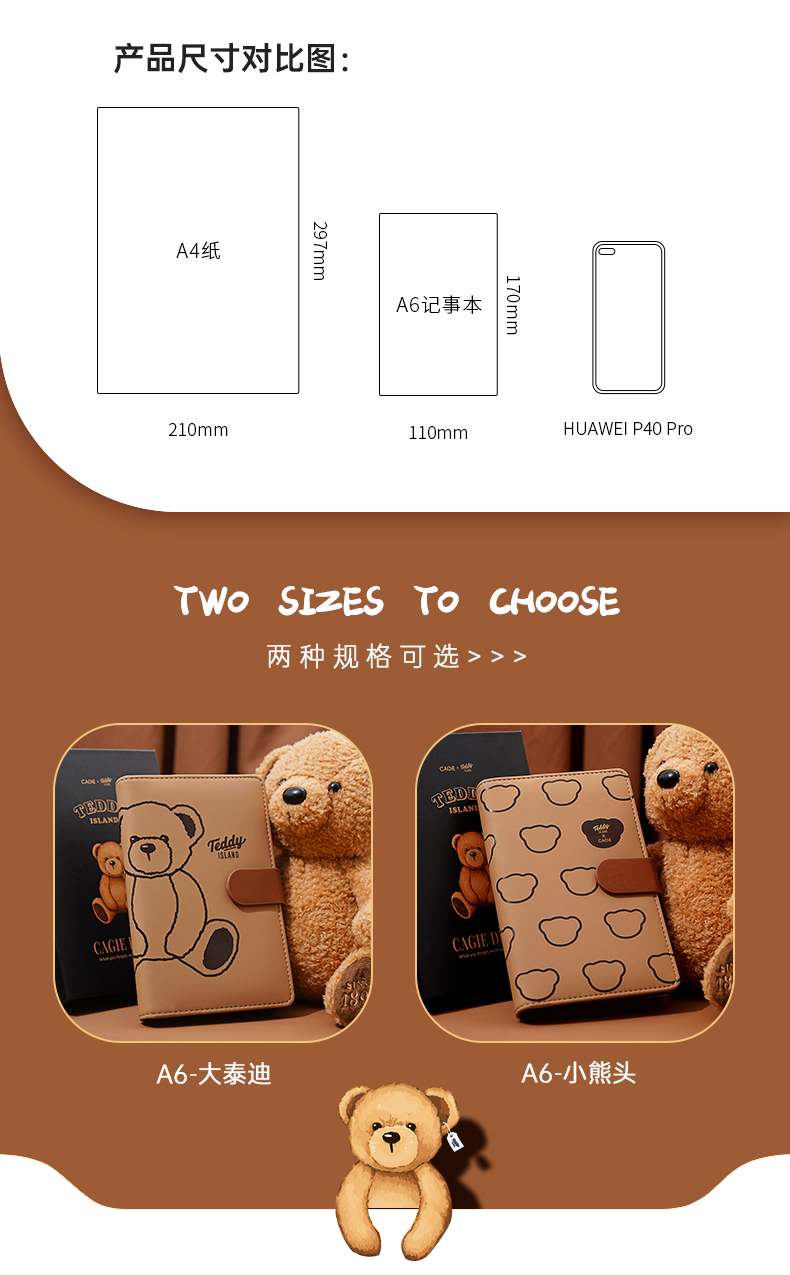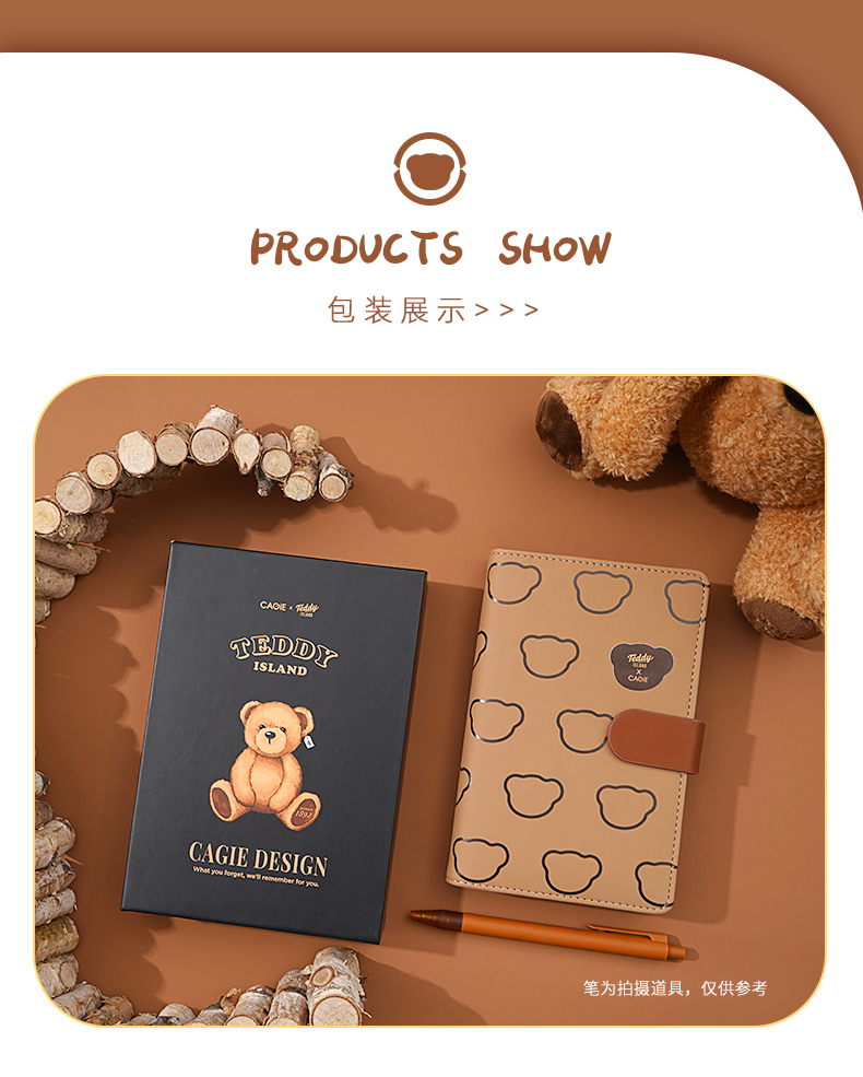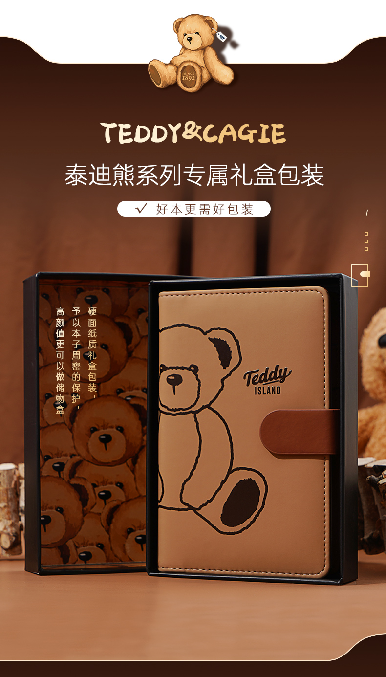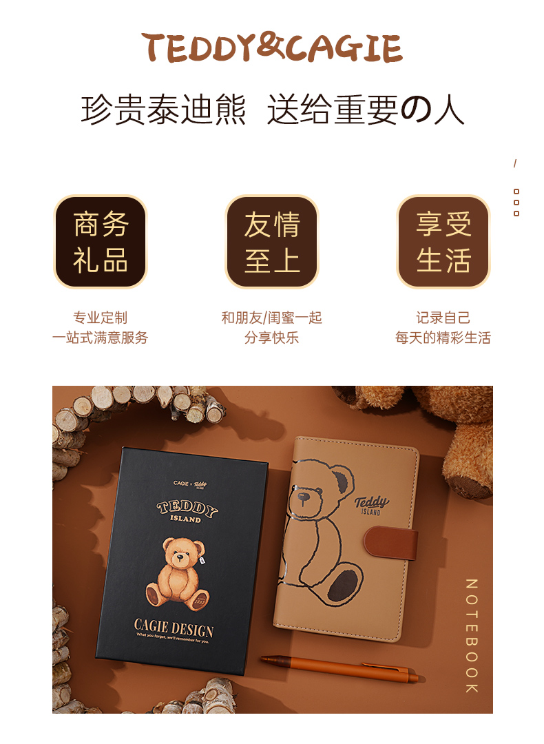 卡杰泰迪熊系列撞色搭扣本A6/CA6J-TD02记事本子少女心笔记本本子创意活页本可拆卸可爱少女手账本学生日记
