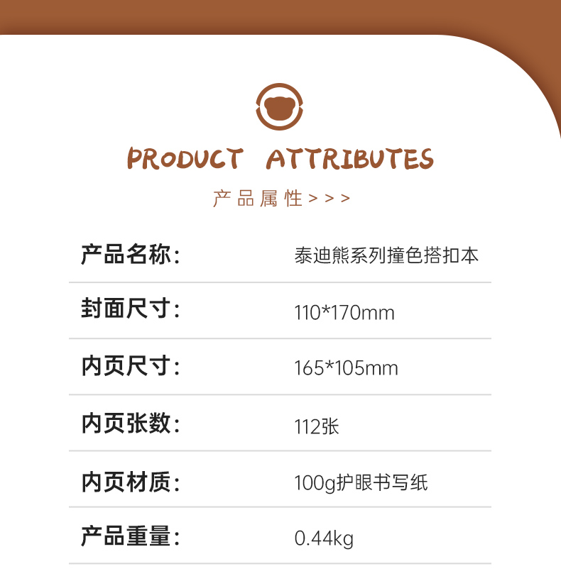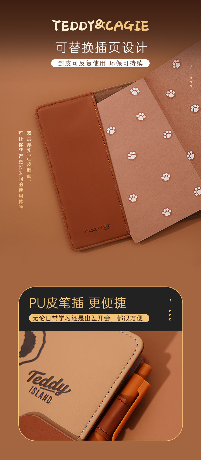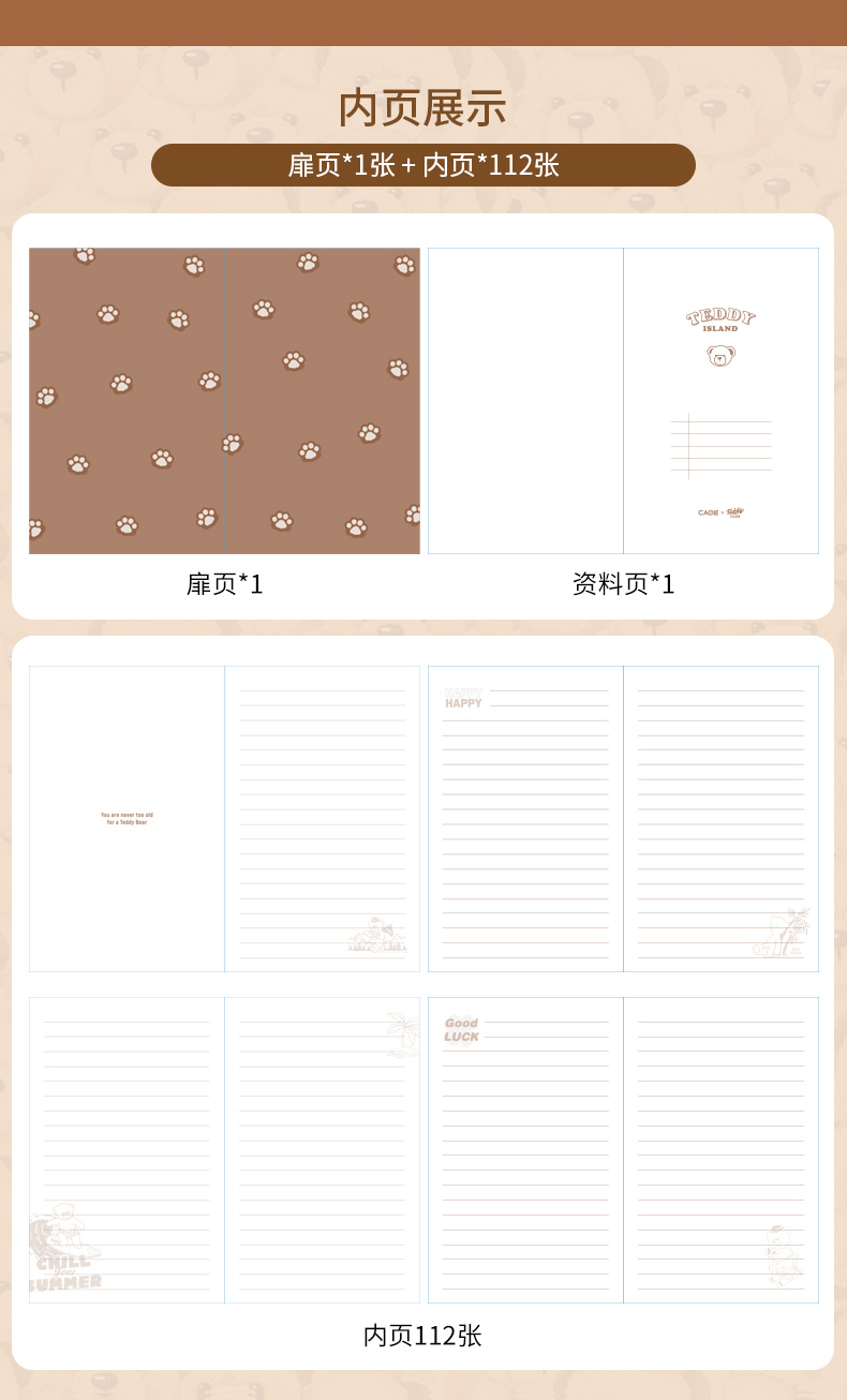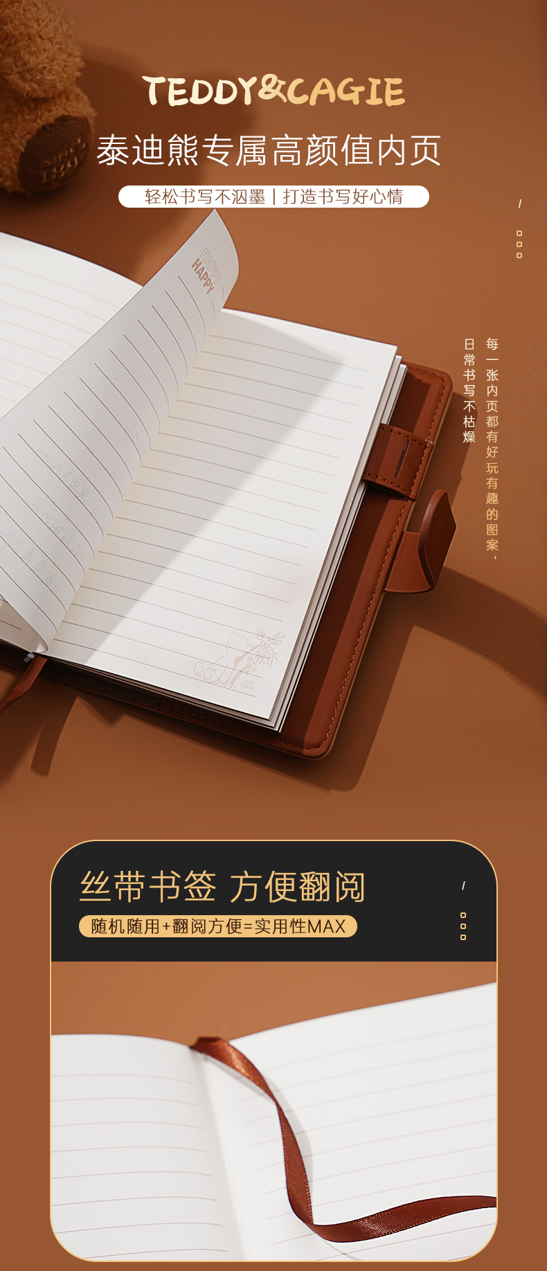 卡杰泰迪熊系列撞色搭扣本A6/CA6J-TD02记事本子少女心笔记本本子创意活页本可拆卸可爱少女手账本学生日记