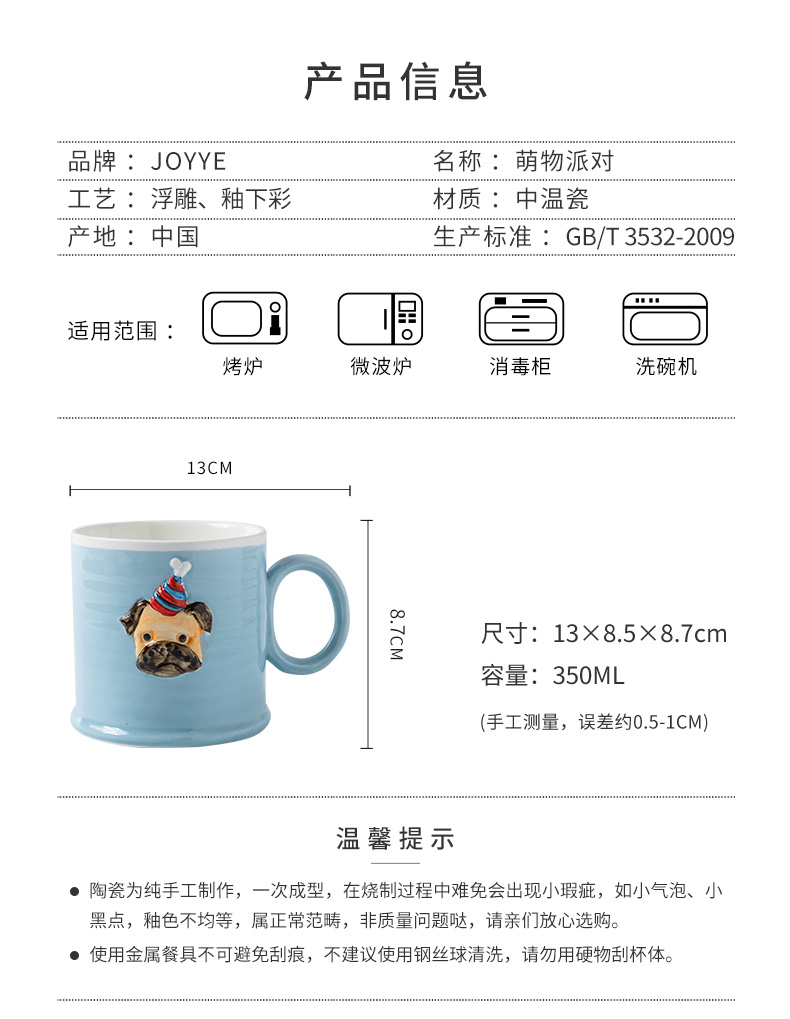 JOYYE卓艺萌物派对陶瓷杯TMC0120055水杯女可爱办公室少女创意个性咖啡杯潮流