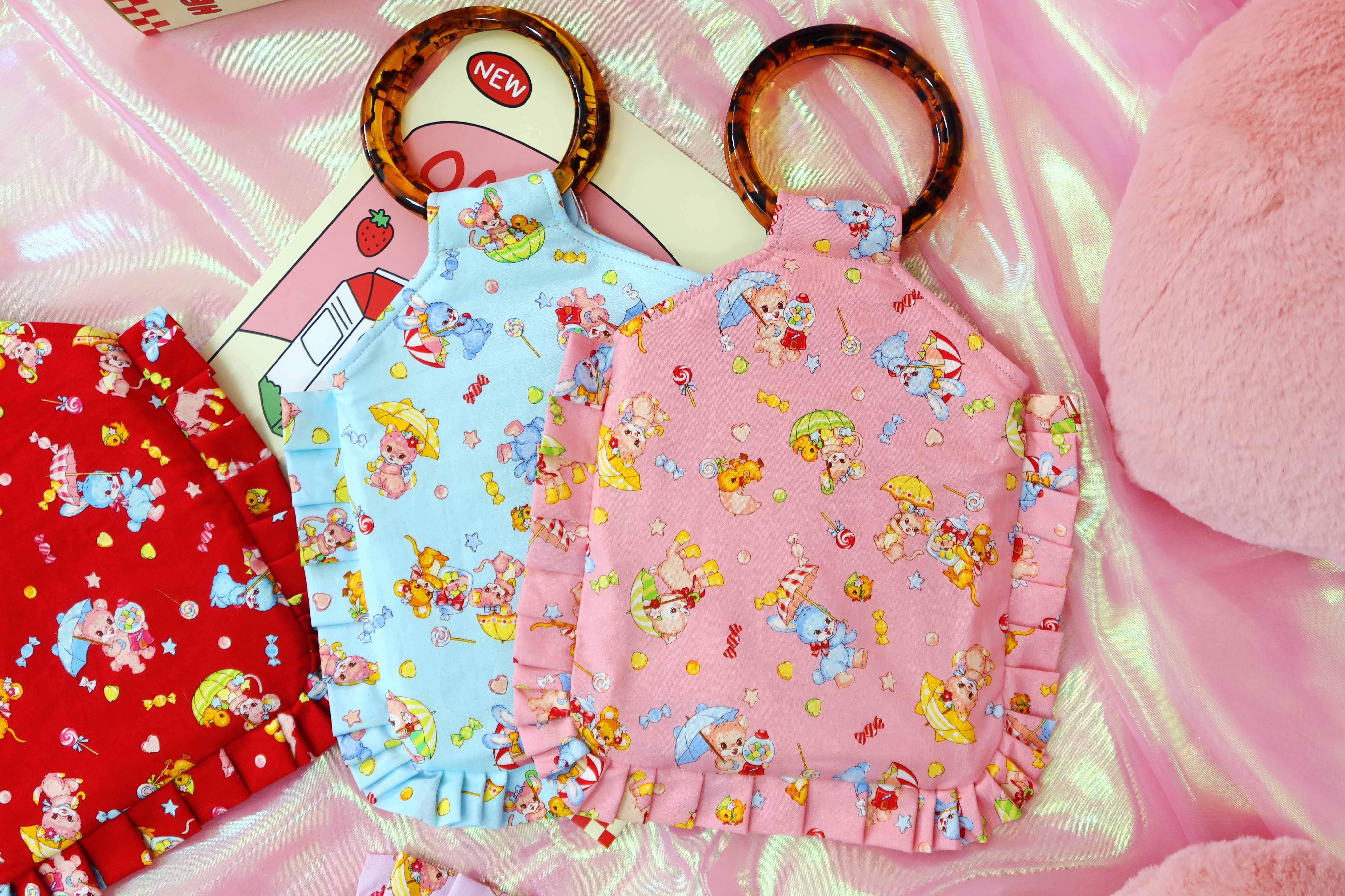 HUJI祤集荷叶边圆环柄手提包POPOLO花伞猫猫兔