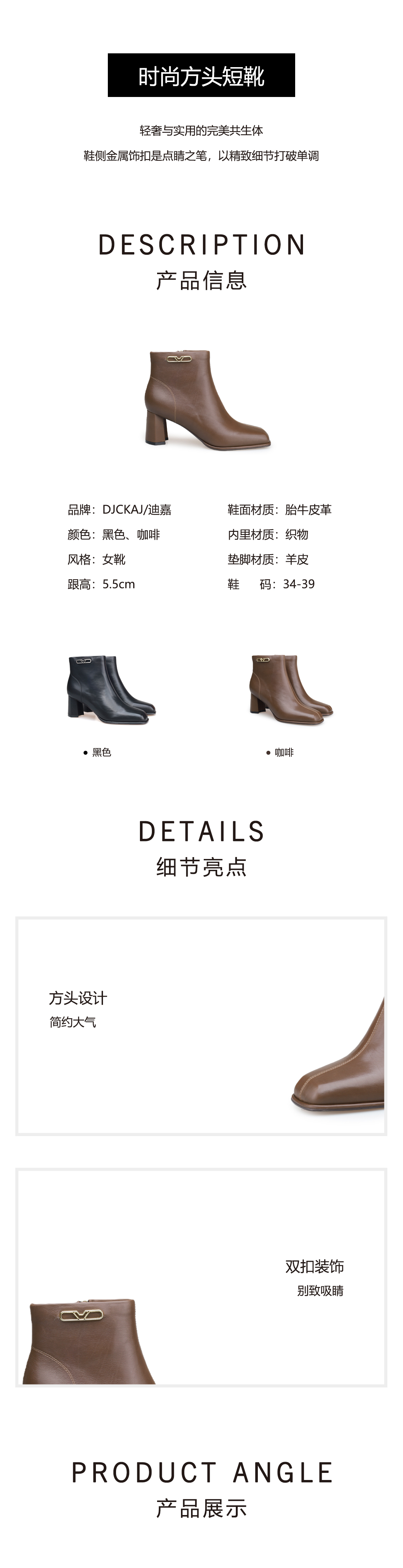 豪麟名鞋迪嘉女鞋短靴DJYYA52WN001咖啡色