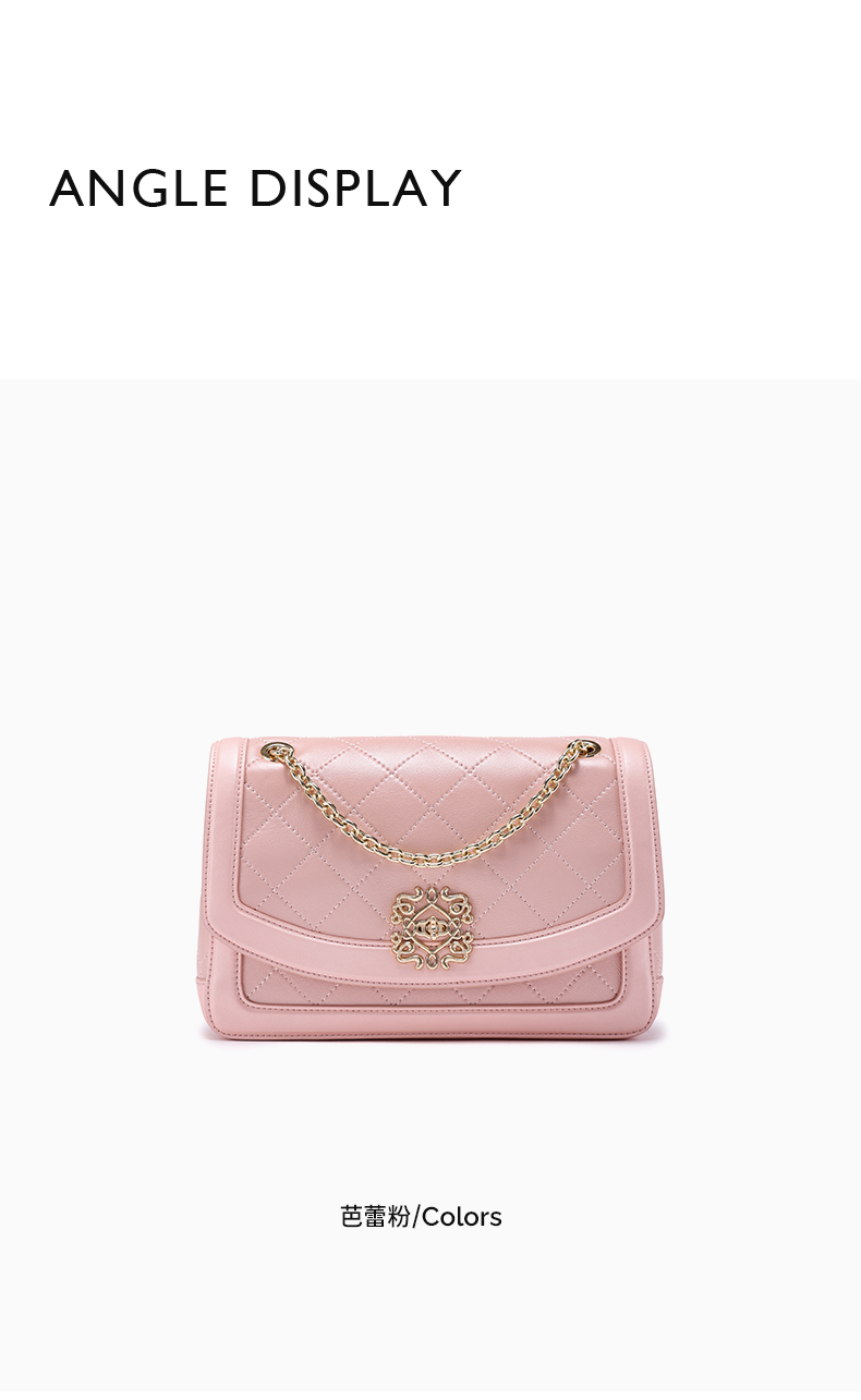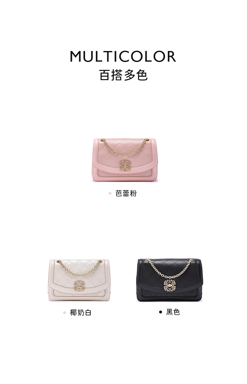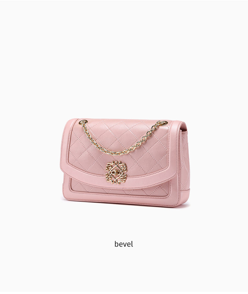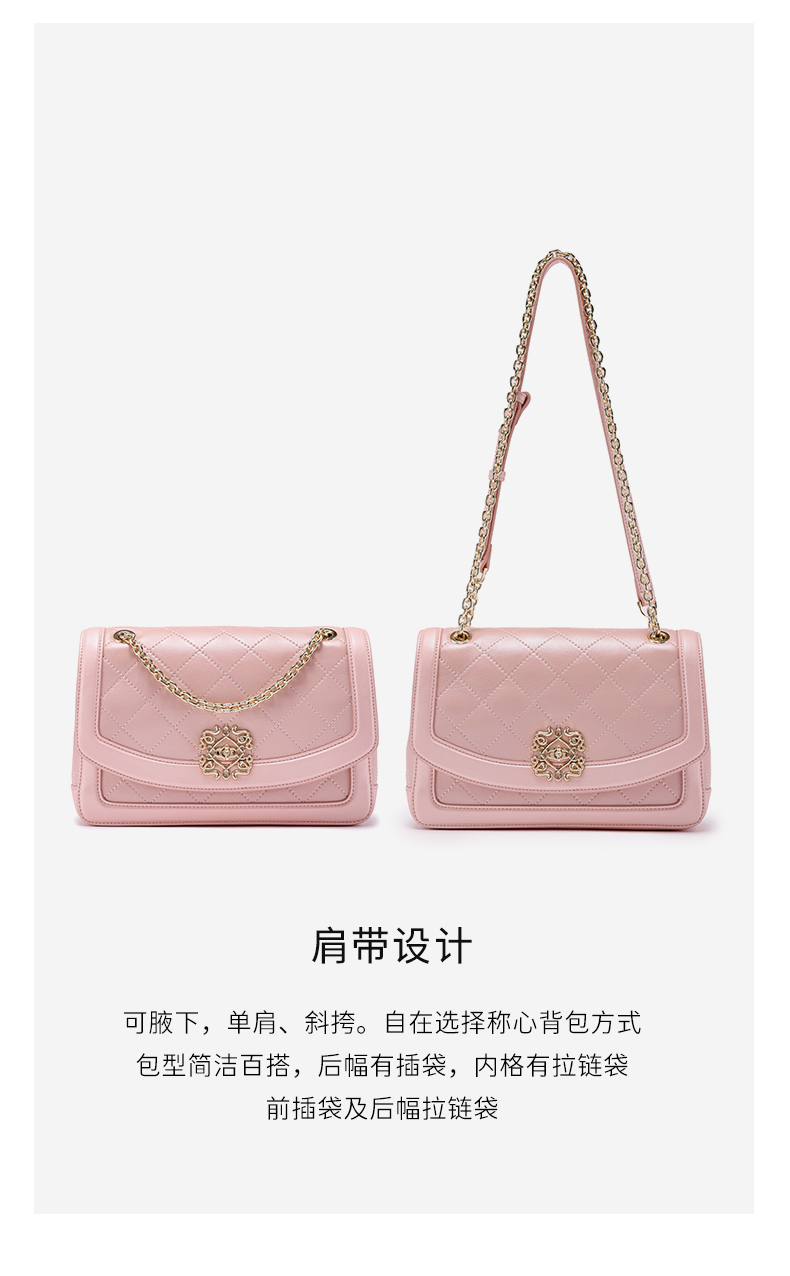梦特娇女士时尚链条包真皮斜挎包个性菱格包可爱单肩包