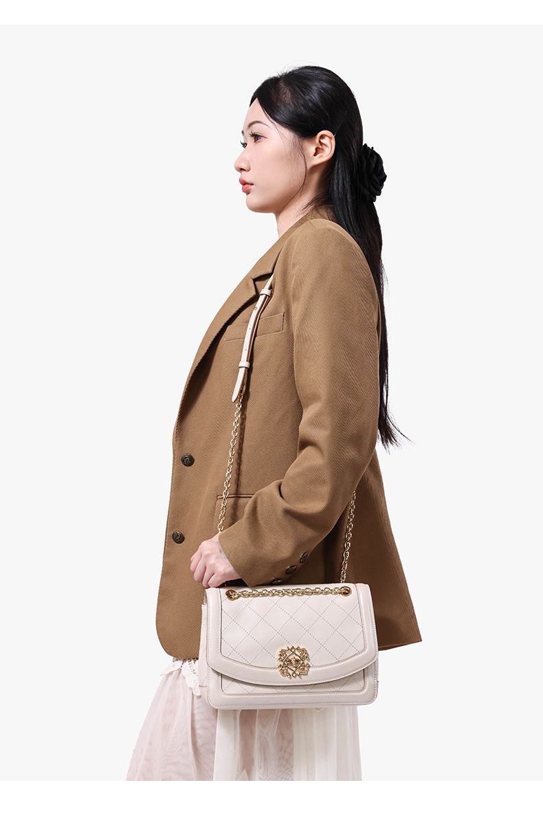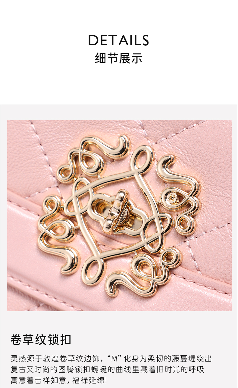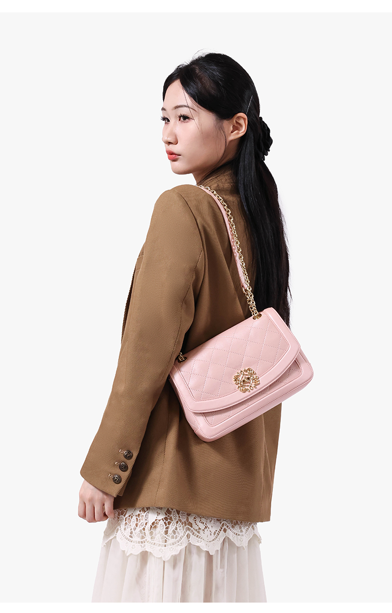 梦特娇女士时尚链条包真皮斜挎包个性菱格包可爱单肩包