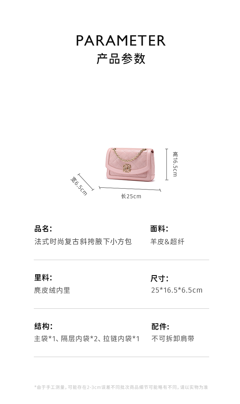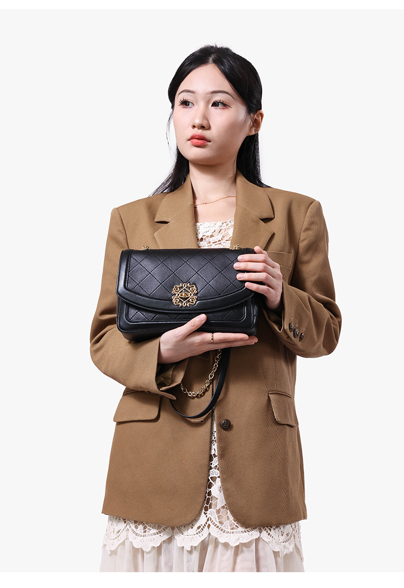 梦特娇女士时尚真皮斜挎包羊皮菱格包皮手提包休闲小香风单肩包