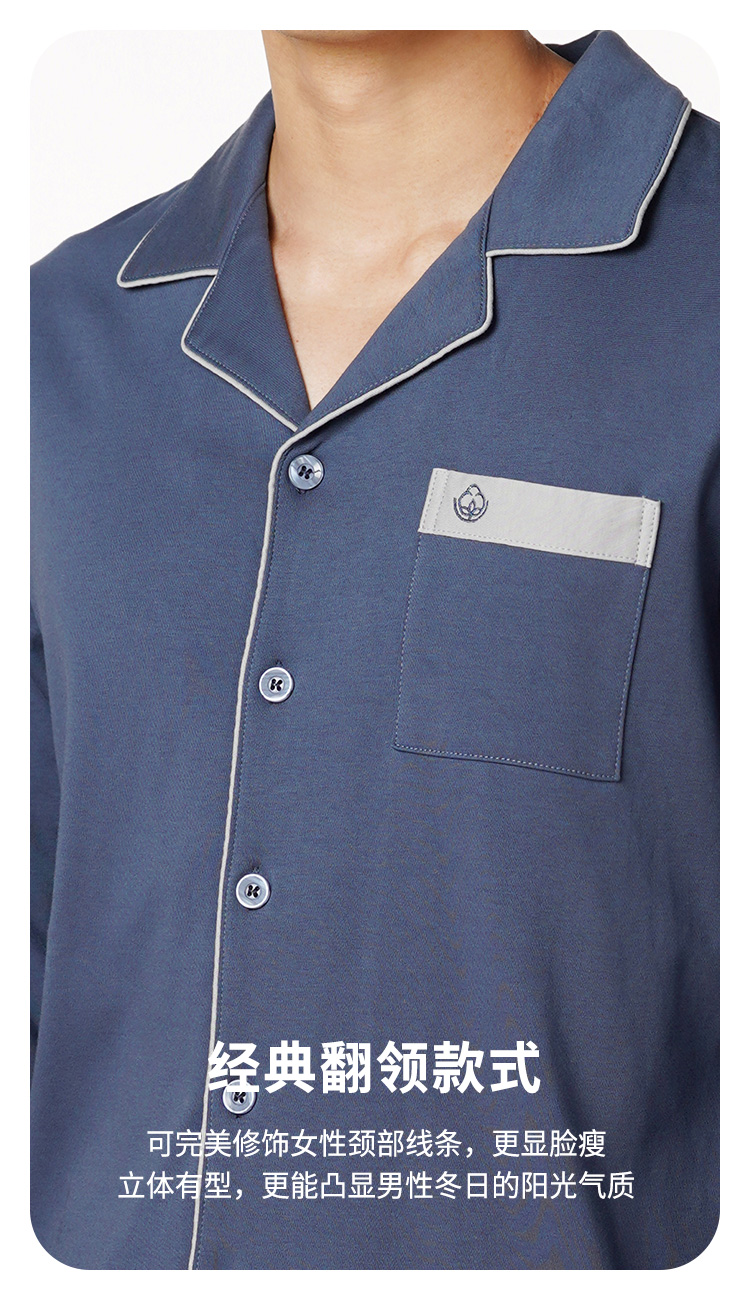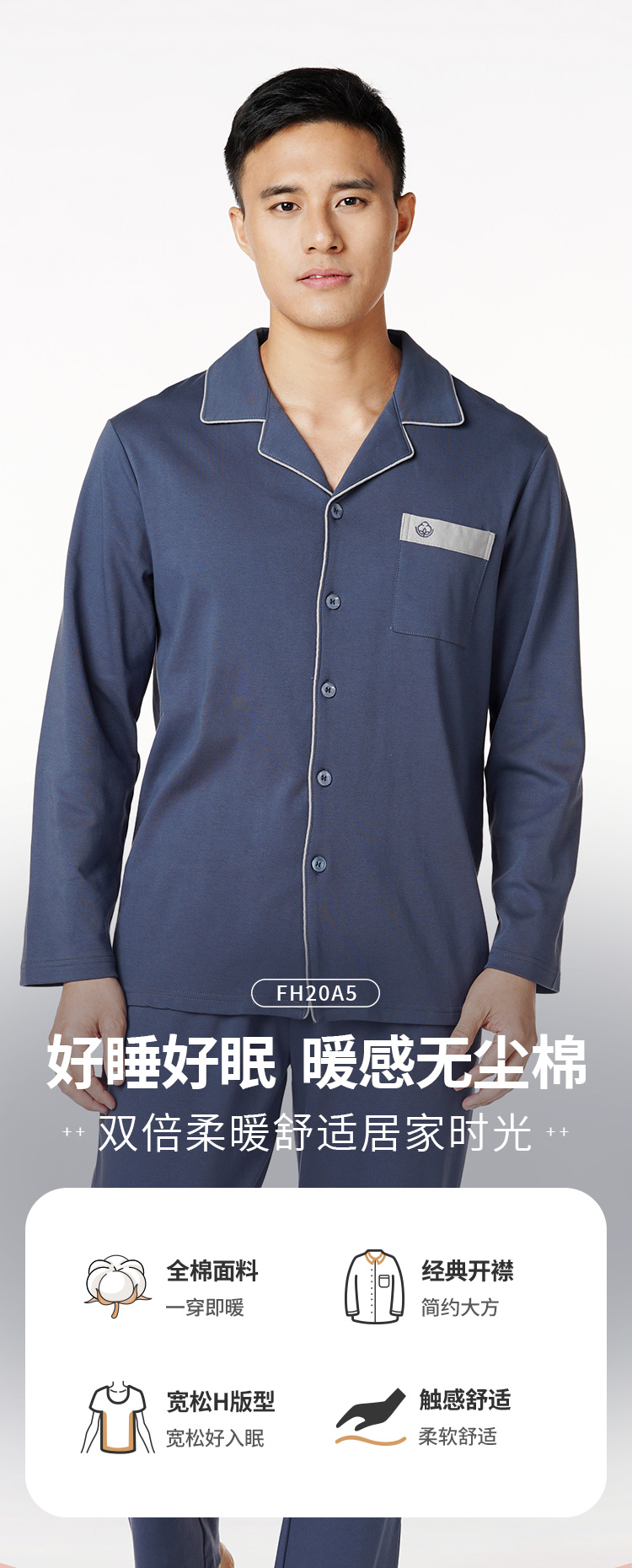 都市丽人都市锋尚好睡好眠男士正价棉质长袖套装暖感无尘棉(磨毛)薄家居服长袖睡衣FH20A5