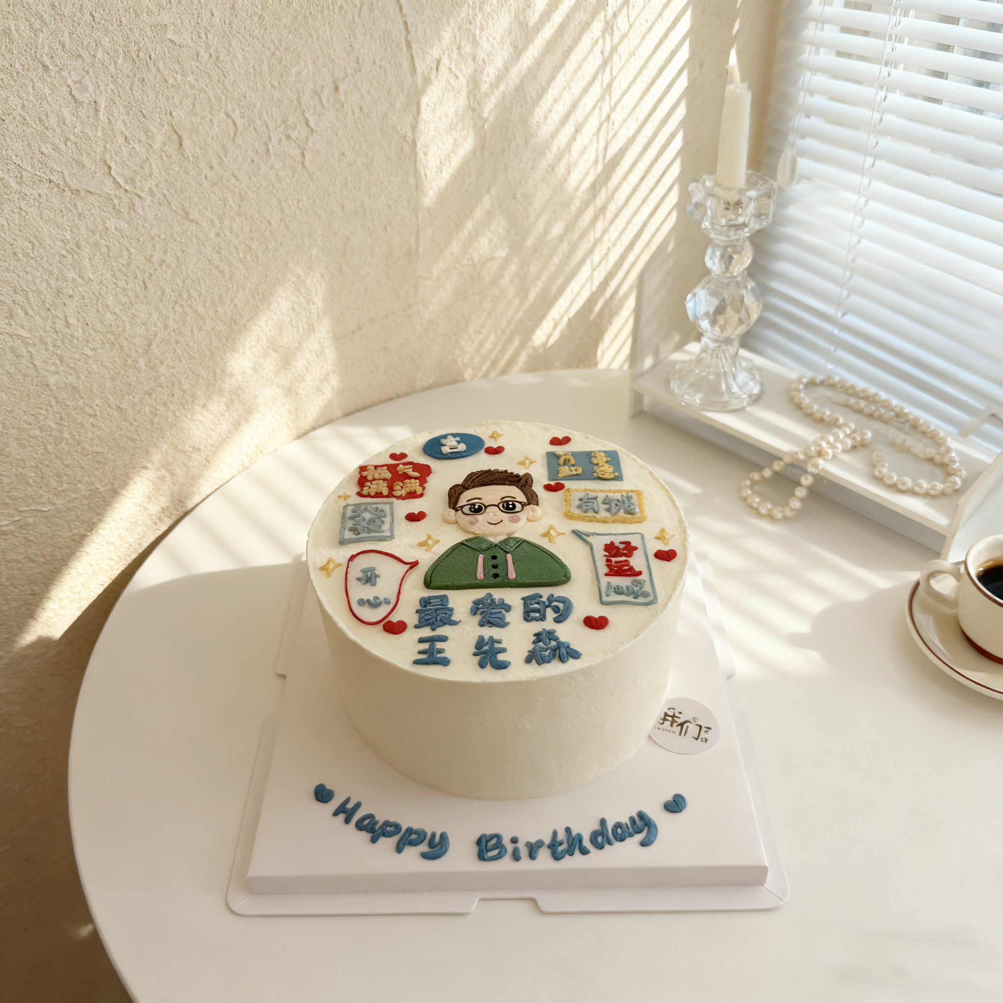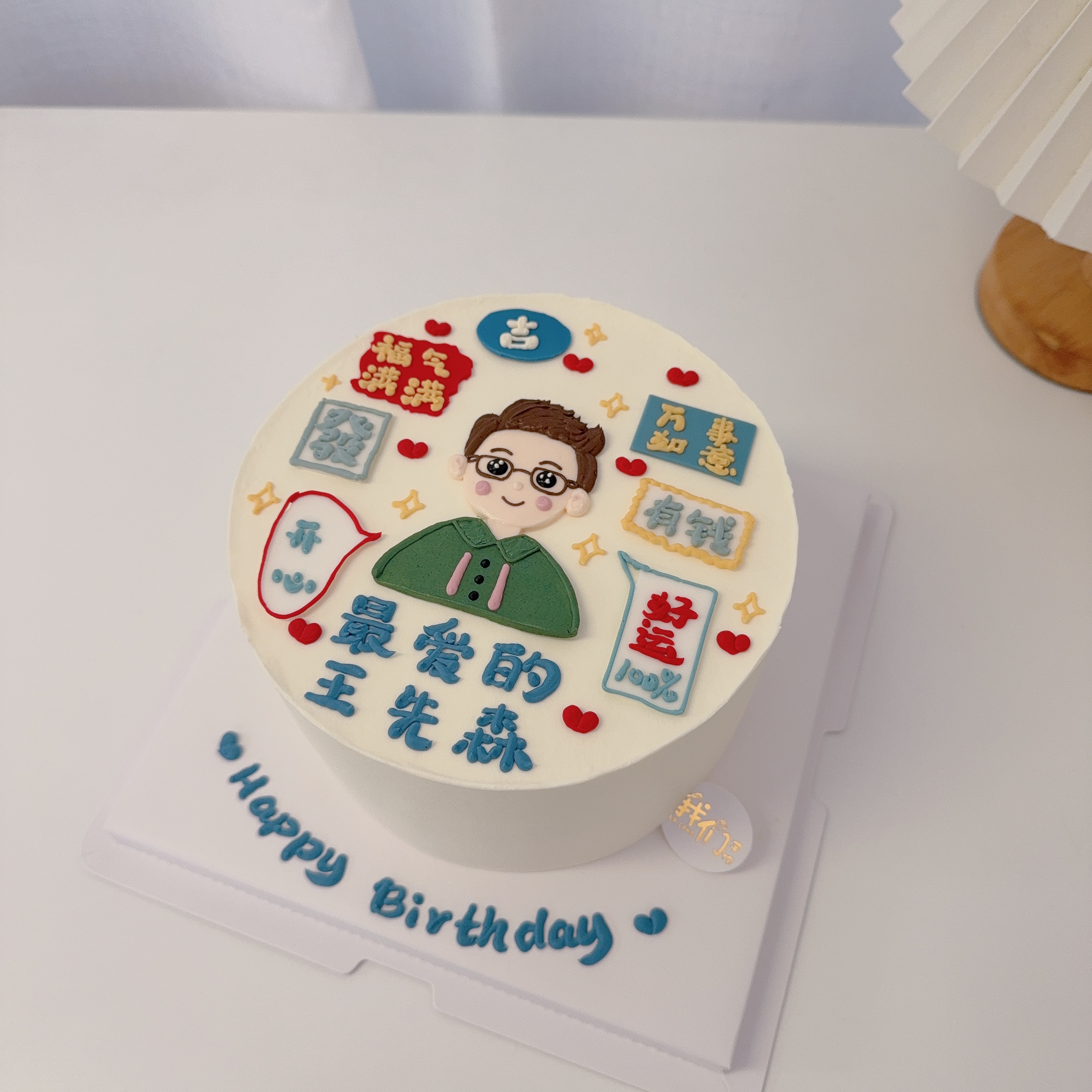 男士手绘+祝福语蛋糕-低糖处理无添加