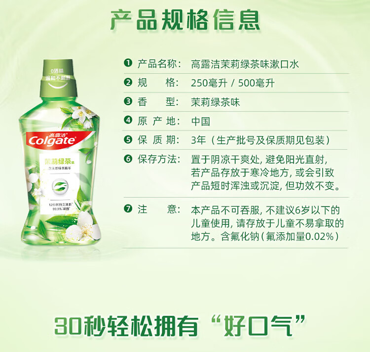 高露洁贝齿清新茶健漱口水 250ml/瓶