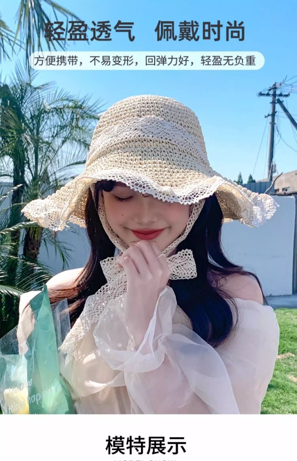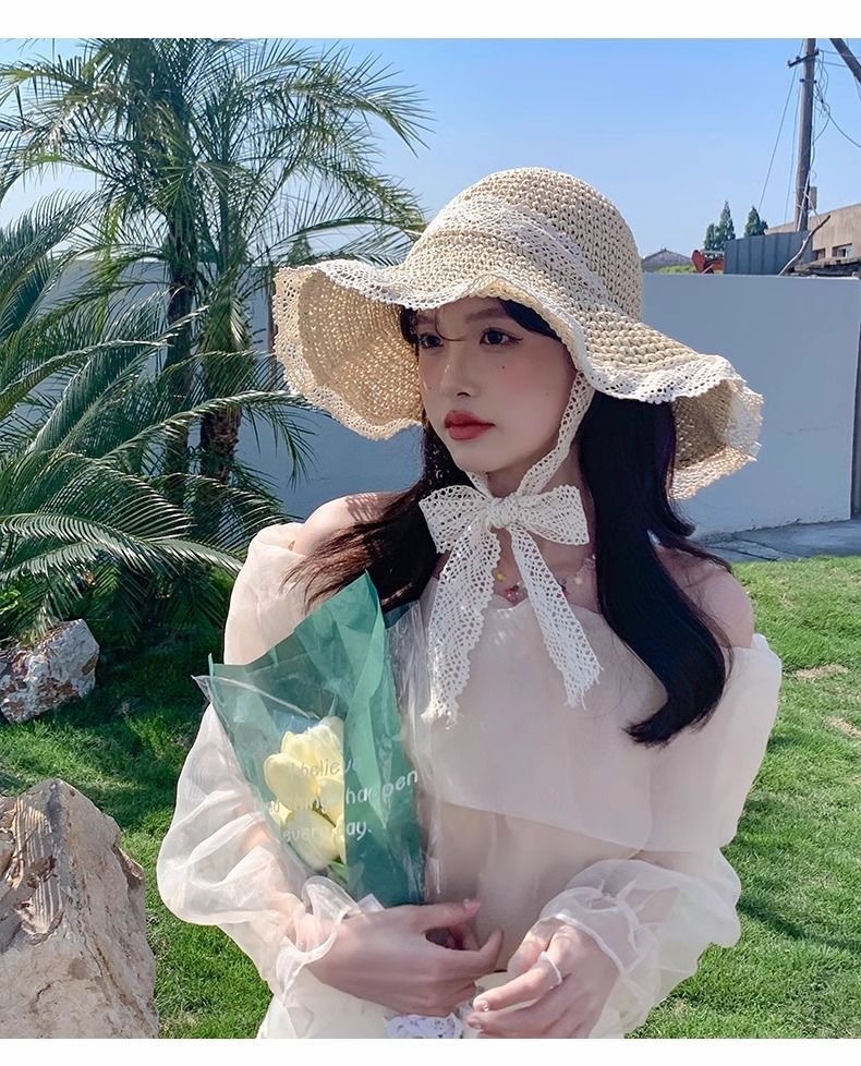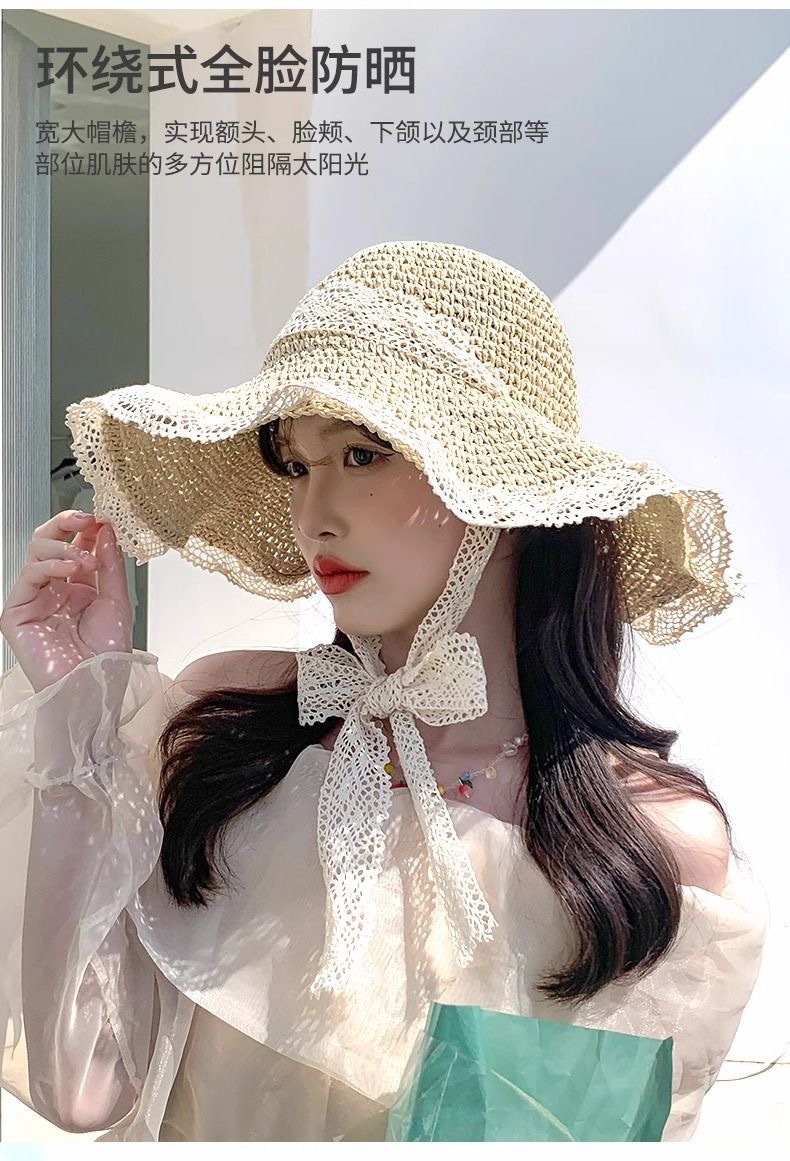 夏季2026草帽女新款镂空草编帽出游防晒帽子 沙滩海边大帽檐遮阳帽