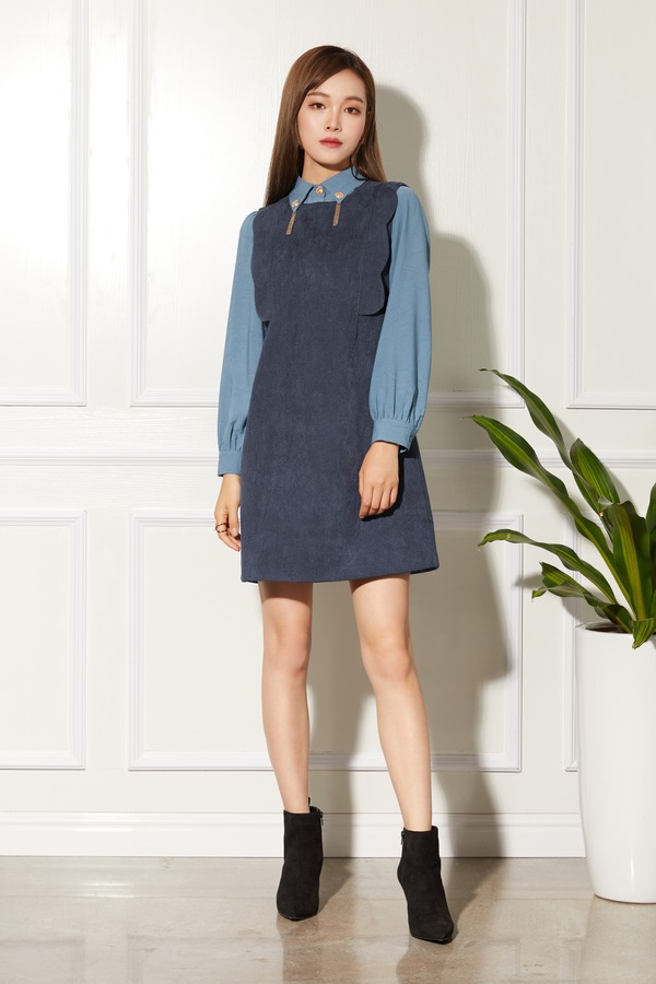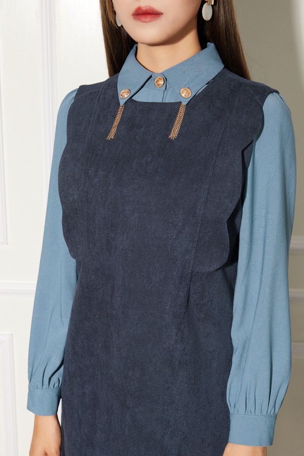 Le Malene 蓝色荷叶边两件套连衣裙 10558