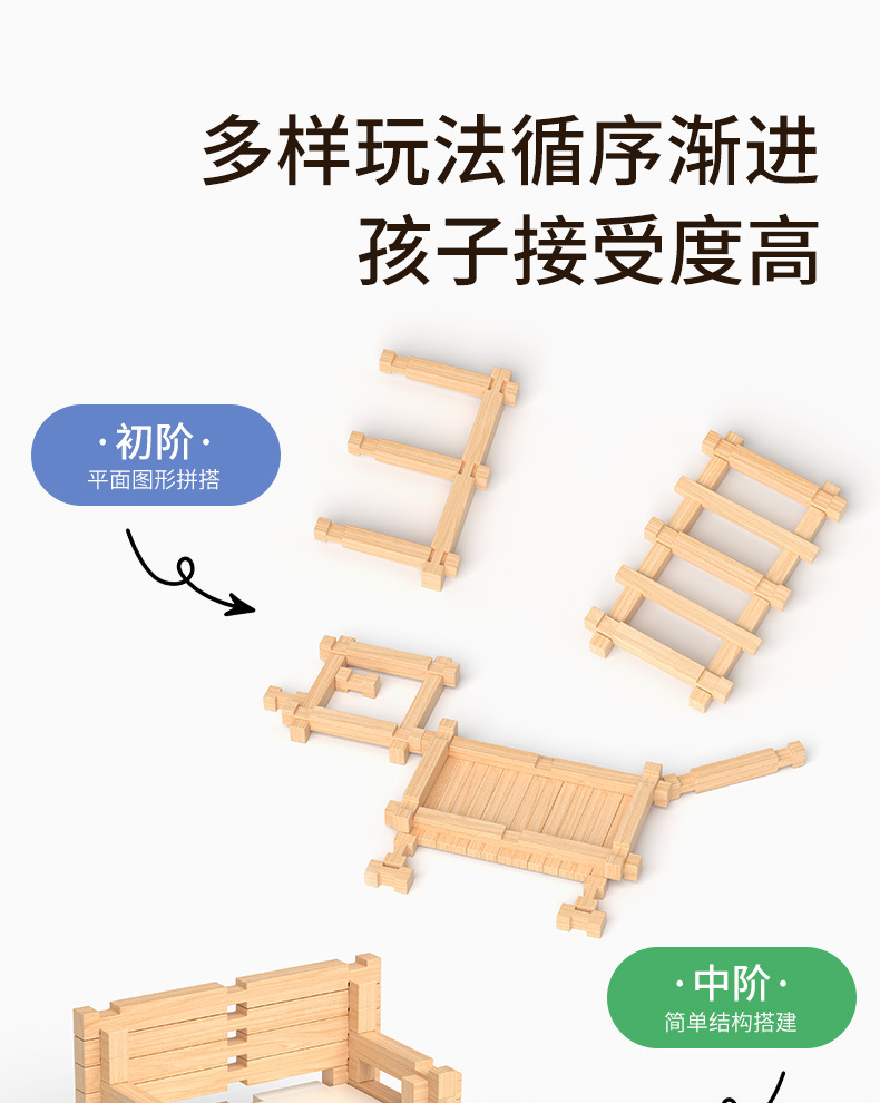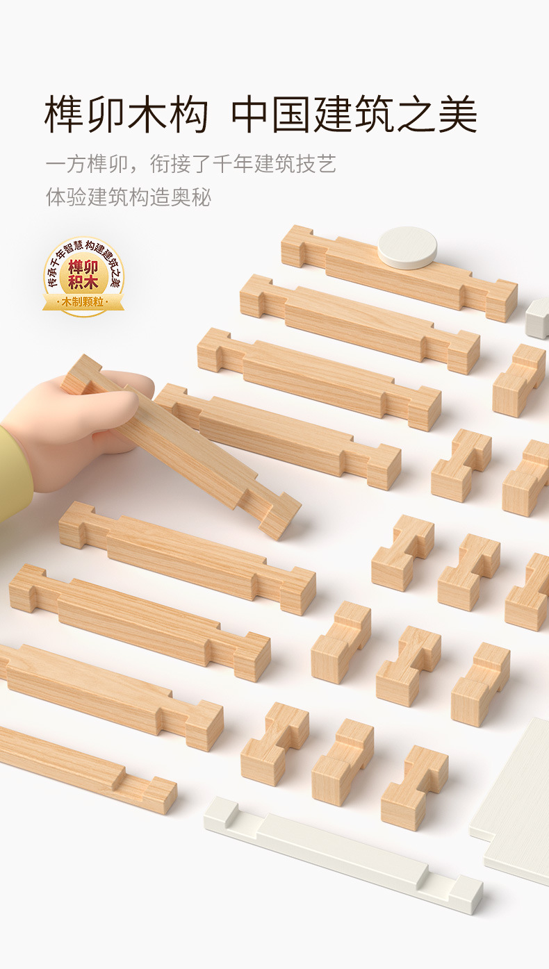 「培养6大“黄金”能力」鲁班榫卯结构积木儿童3-12岁建筑大师益智启蒙男女孩木质拼装玩具