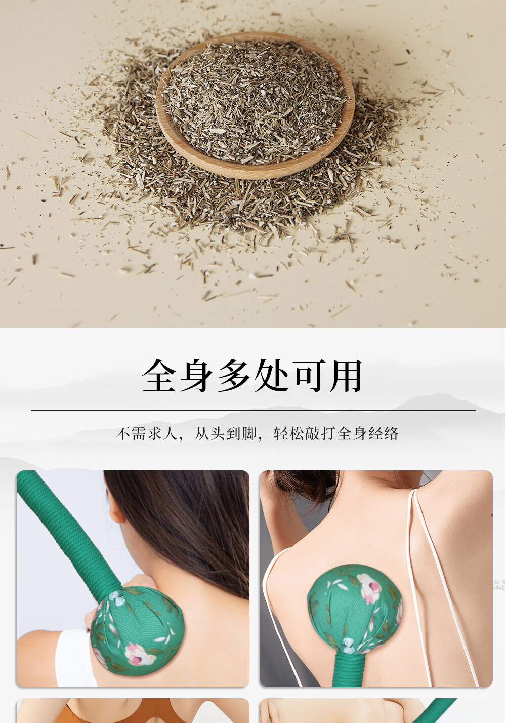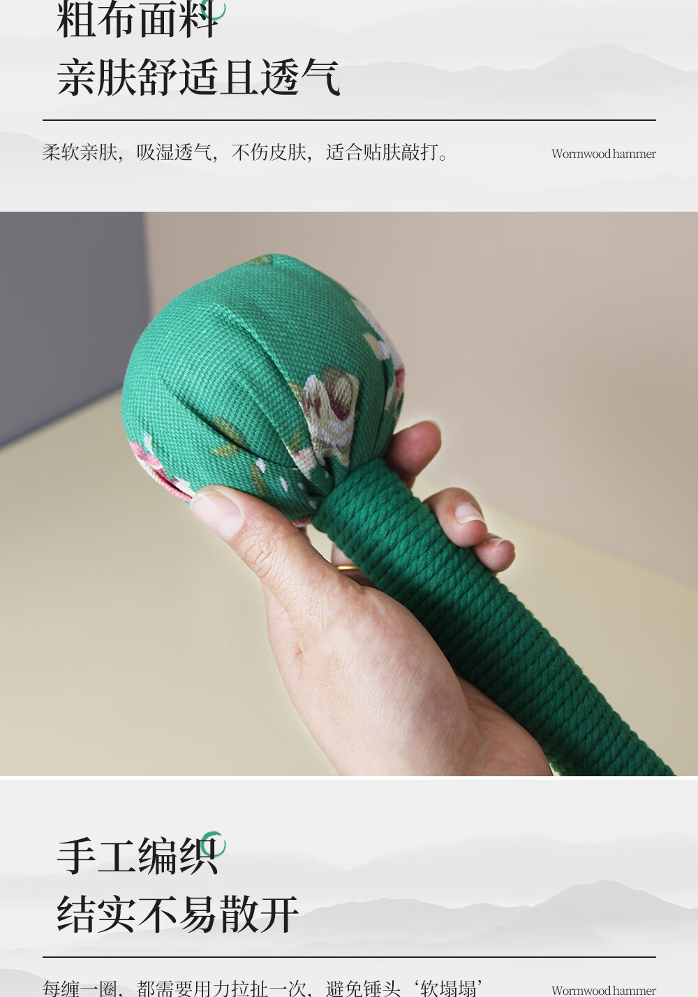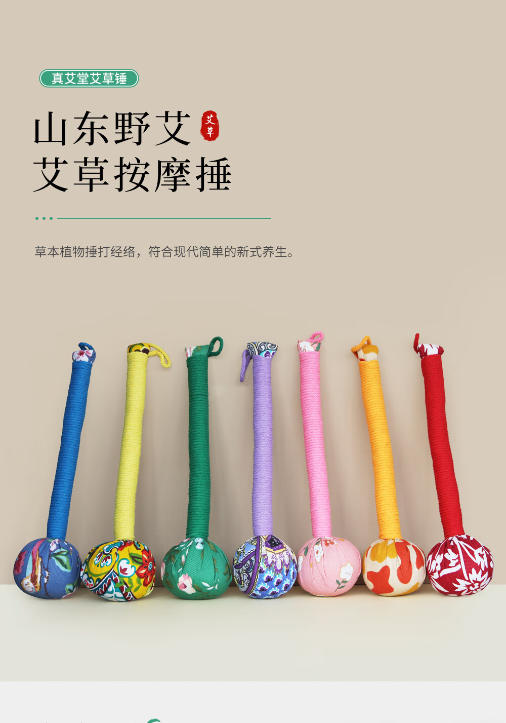 真艾堂艾草锤子养生按摩捶背经络拍八虚拍打神器敲背锤肩疏通艾灸敲打棒 33cm长艾草锤1个【颜色随机发】