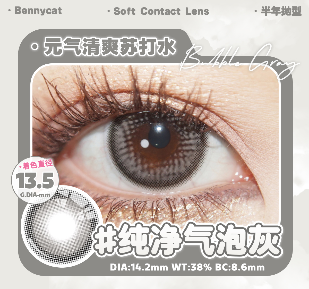 自然灰瞳丨纯净气泡灰·Bennycat丨14.2mm(半年抛/2片装)