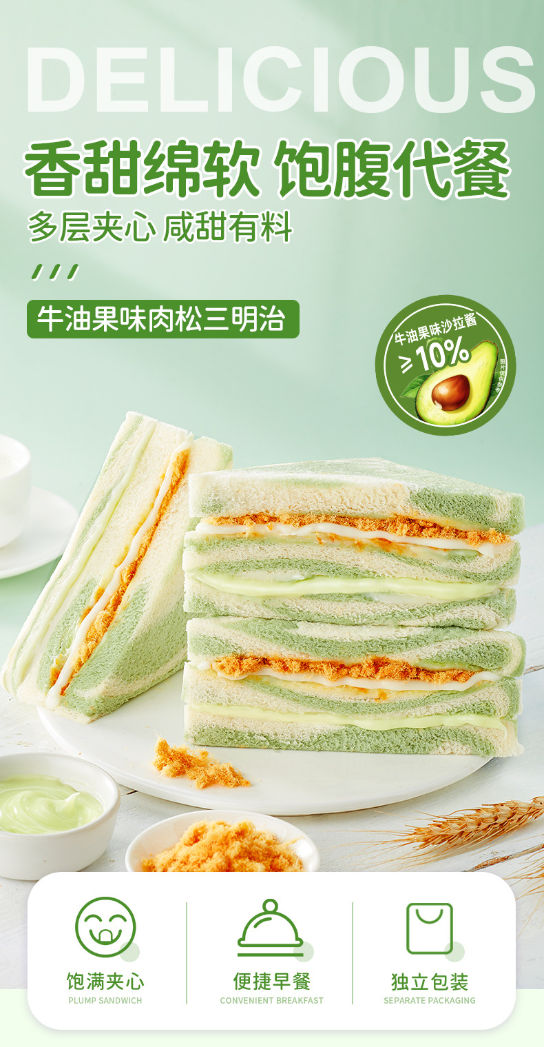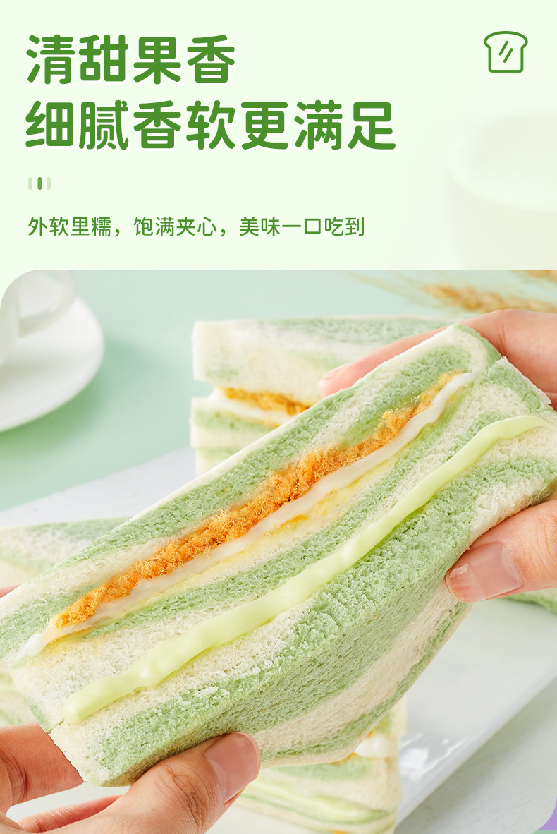 【买一送一!牛油果味肉松三明治】外软里糯,饱满夹心,清甜果香,美味一口吃到!饱腹代餐面包整箱早餐懒人速食无边吐司零食品休闲小吃