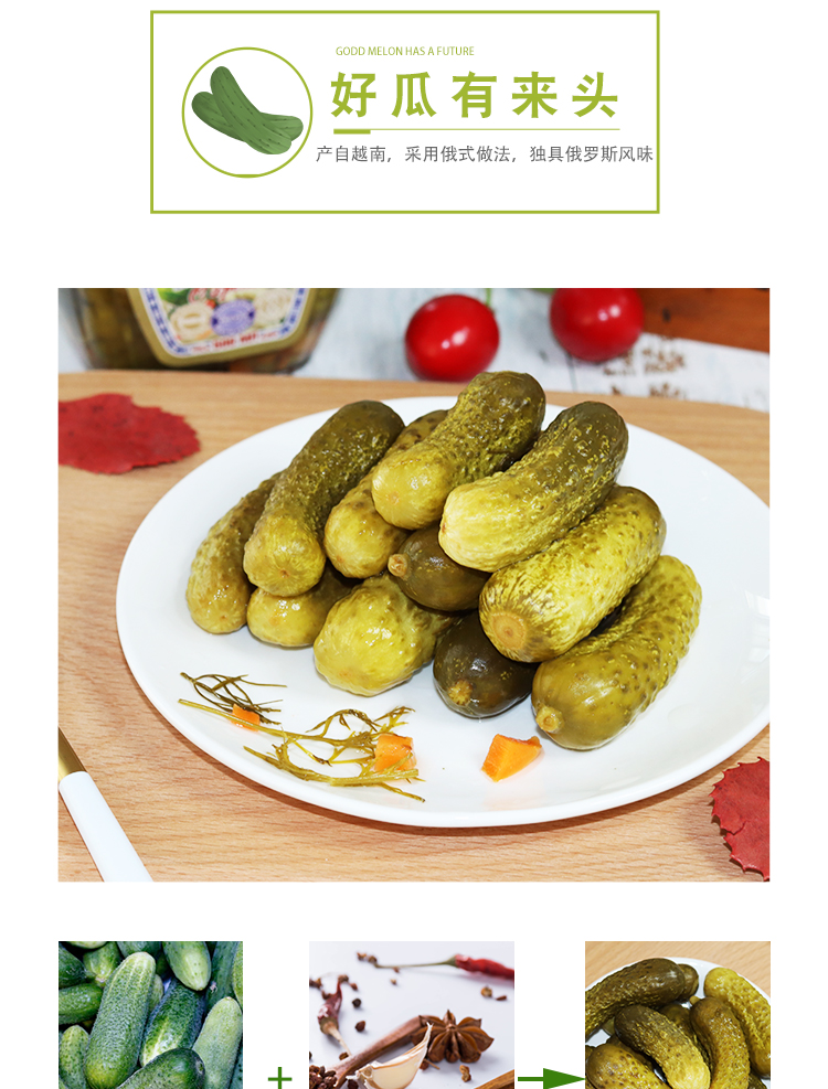 【中欧班列精选】 俄罗斯酸黄瓜 原装进口金谷牌酸黄瓜 腌制蔬泡菜即食俄式腌渍小黄瓜罐头500g