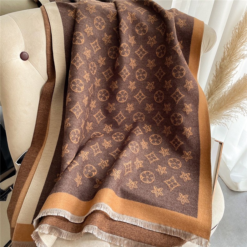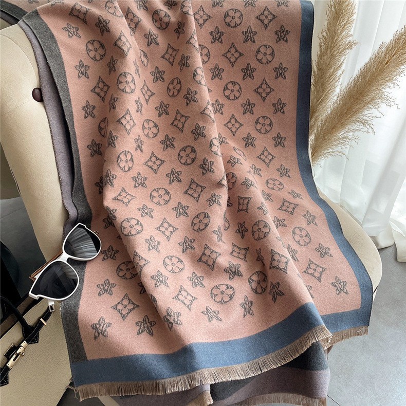 冬季欧美仿羊绒围巾女秋冬爆款长款外搭空调披肩双面保暖围脖英伦风围巾披肩午睡毯