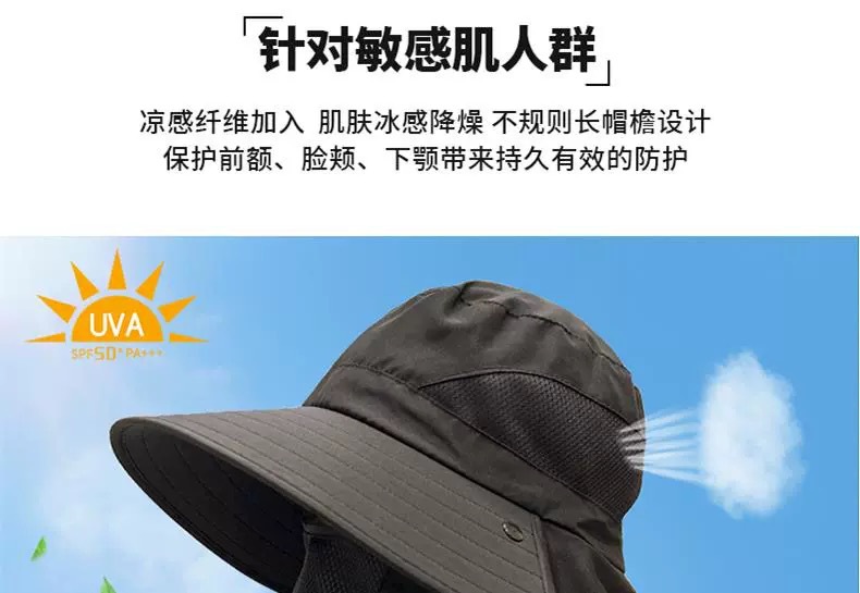 帽子男夏季钓鱼全包防晒帽渔夫帽网红防晒防水遮脸防尘防晒帽加厚