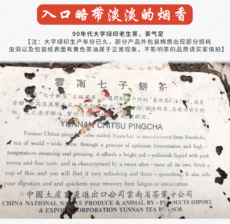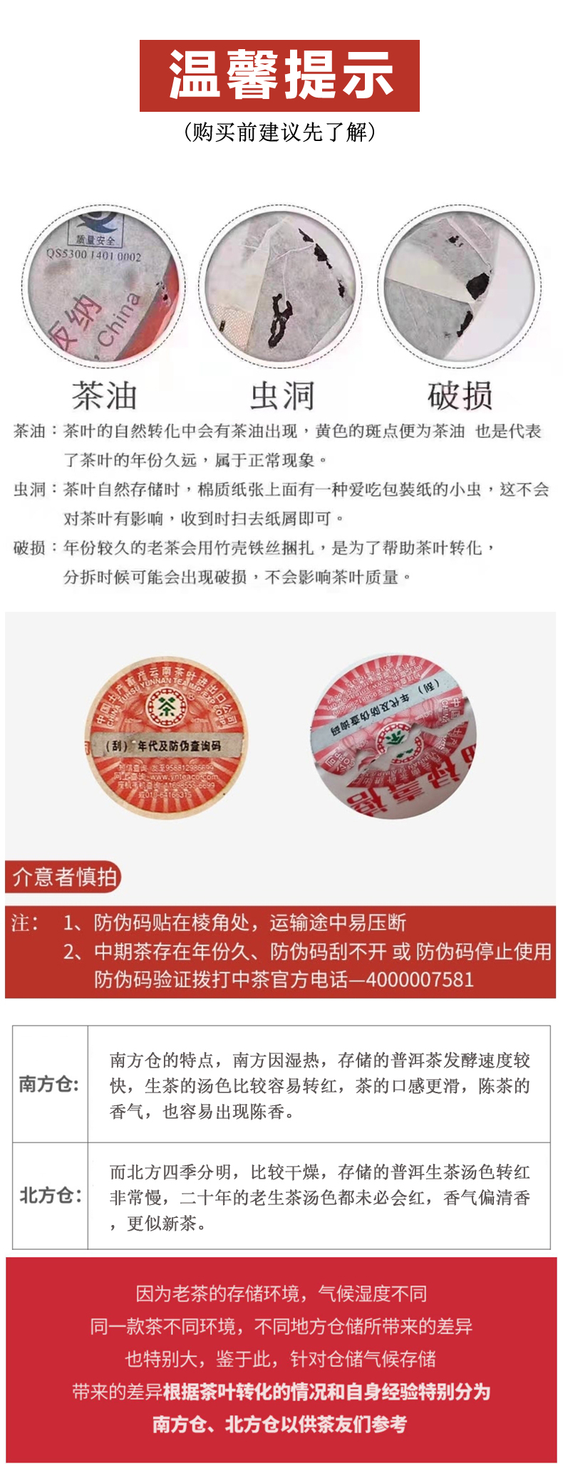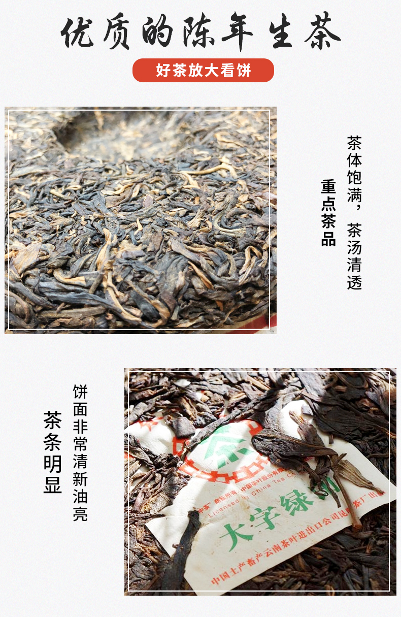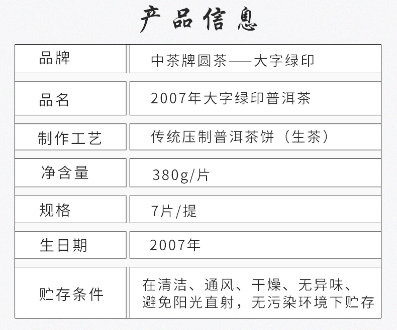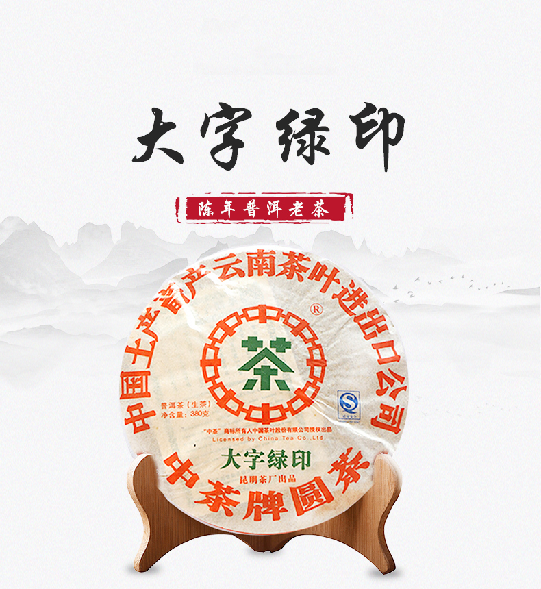 中粮-中茶2007年大字绿印圆茶饼云南七子饼生茶380g/饼/云南干仓直发