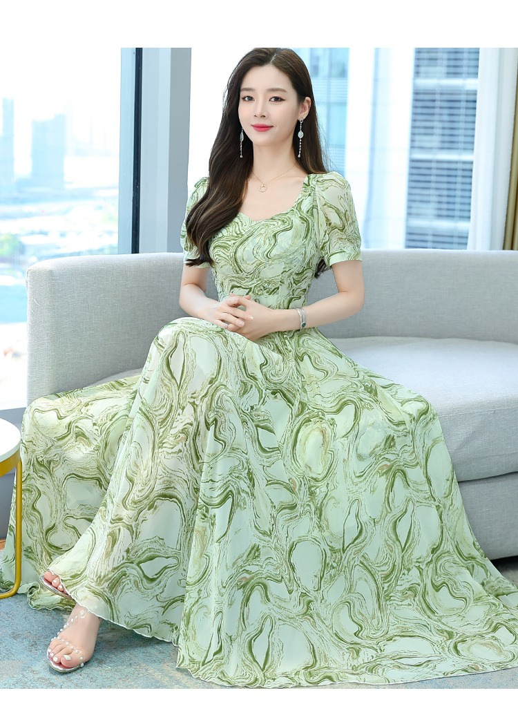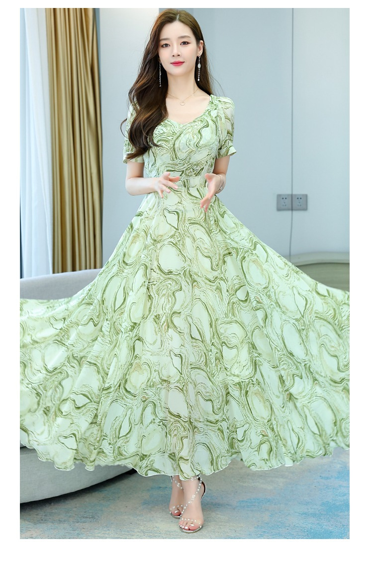 冰丝连衣裙女2022夏季新款大码女装高品质感气质收腰长裙飘逸沙滩裙